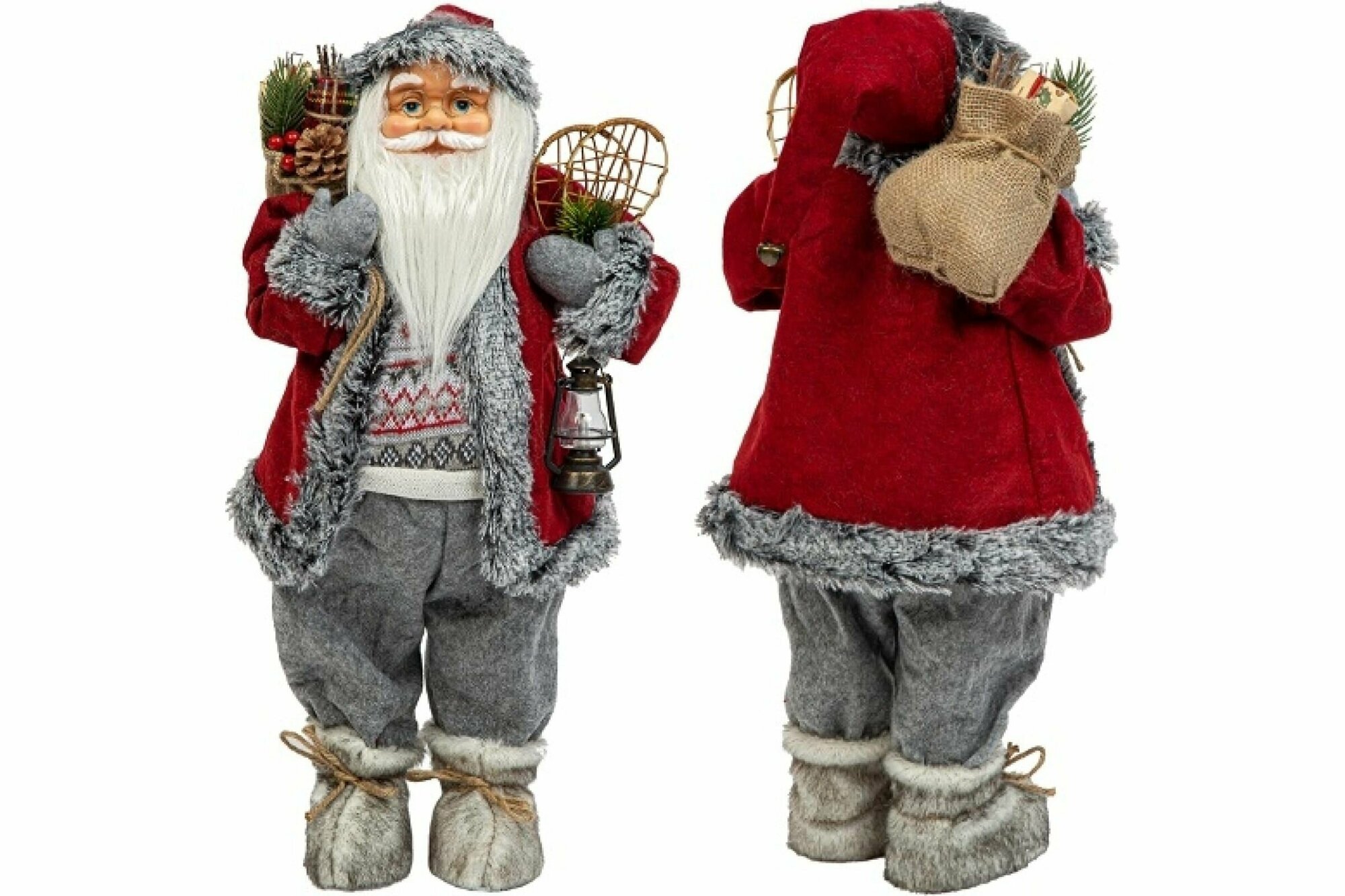 Фигурка дед мороз пластик/текстиль красный/серый Noname M43