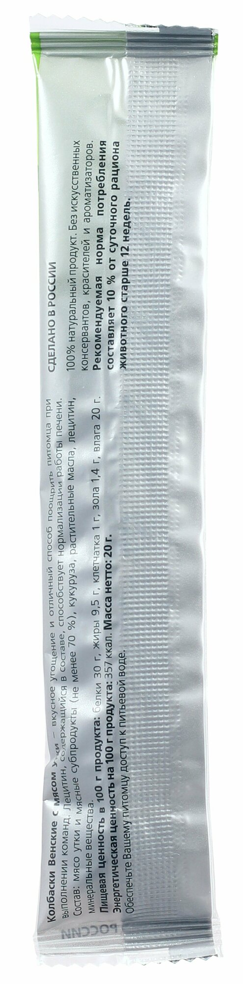Колбаски Венские – вкусное угощение и отличный способ поощрить питомца при выполнении команд. Имеют мягкую консистенцию, идеально подходят в качестве ежедневного угощения. Лецитин, содержащийся в составе, способствует нормализации работы печени.