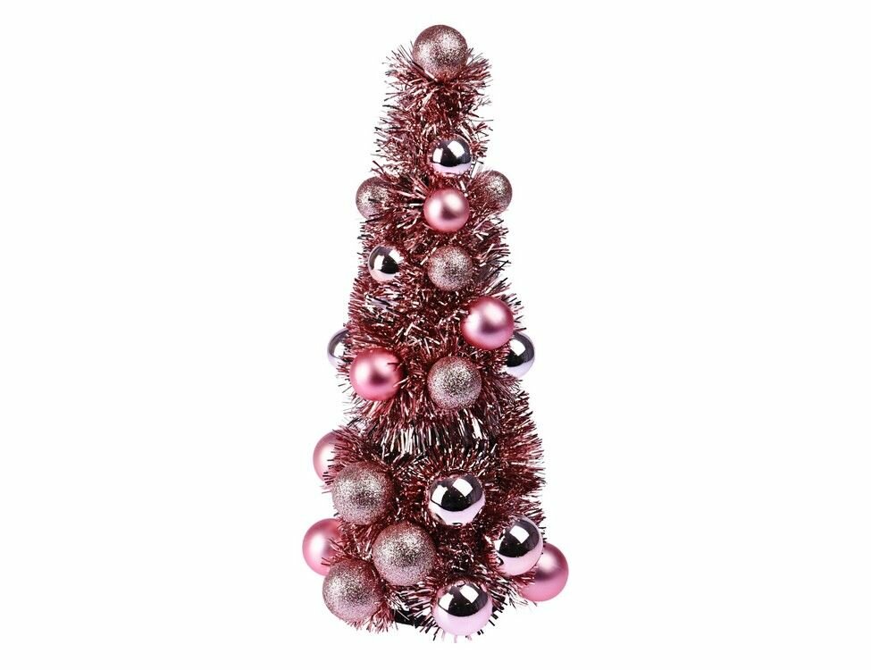 Искусственная ель с шарами пластик розовый 15х33 см Без бренда