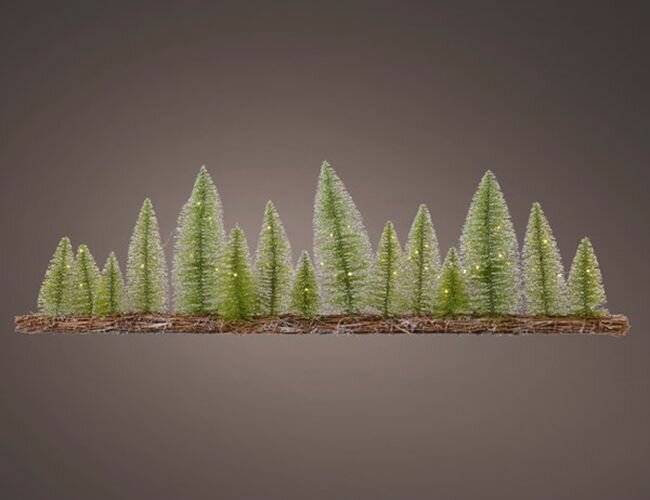 Чудесное новогоднее украшение для большого праздничного стола, полки или подоконника - нежные ёлочки с хвоей из несминаемой лески, чуть тронутой инеем, выросшие на удивительной грядке из ивовой лозы! А их воздушное очарование подчёркивает целая стайка светлячков - крохотных, но ярких тёплых огоньков! Тренд нового сезона, при том - весьма обаятельный, правда? Характеристики:Размер (ДхВхШ) - 100х30х10 см.60 тёплых белых микро LED-огней.Материал - леска, ивовая лоза.Подводящий провод - 30 см.Может работать как в непрерывном режиме, так и по таймеру - 6 часов работает, 18 отдыхает.Работает от 3хАА батареек (в комплект не входят).Предназначено для использования в помещении, IP20. Производитель KAEMINGK (серия Lumineo), Голландия.Производство размещено в Китае.