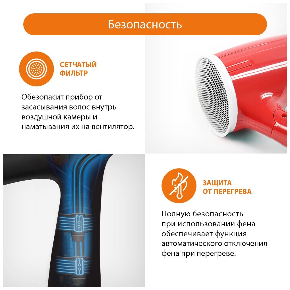 HOME ELEMENT HE-HD319 красный коралл фен HE-HD319 Red Coral
