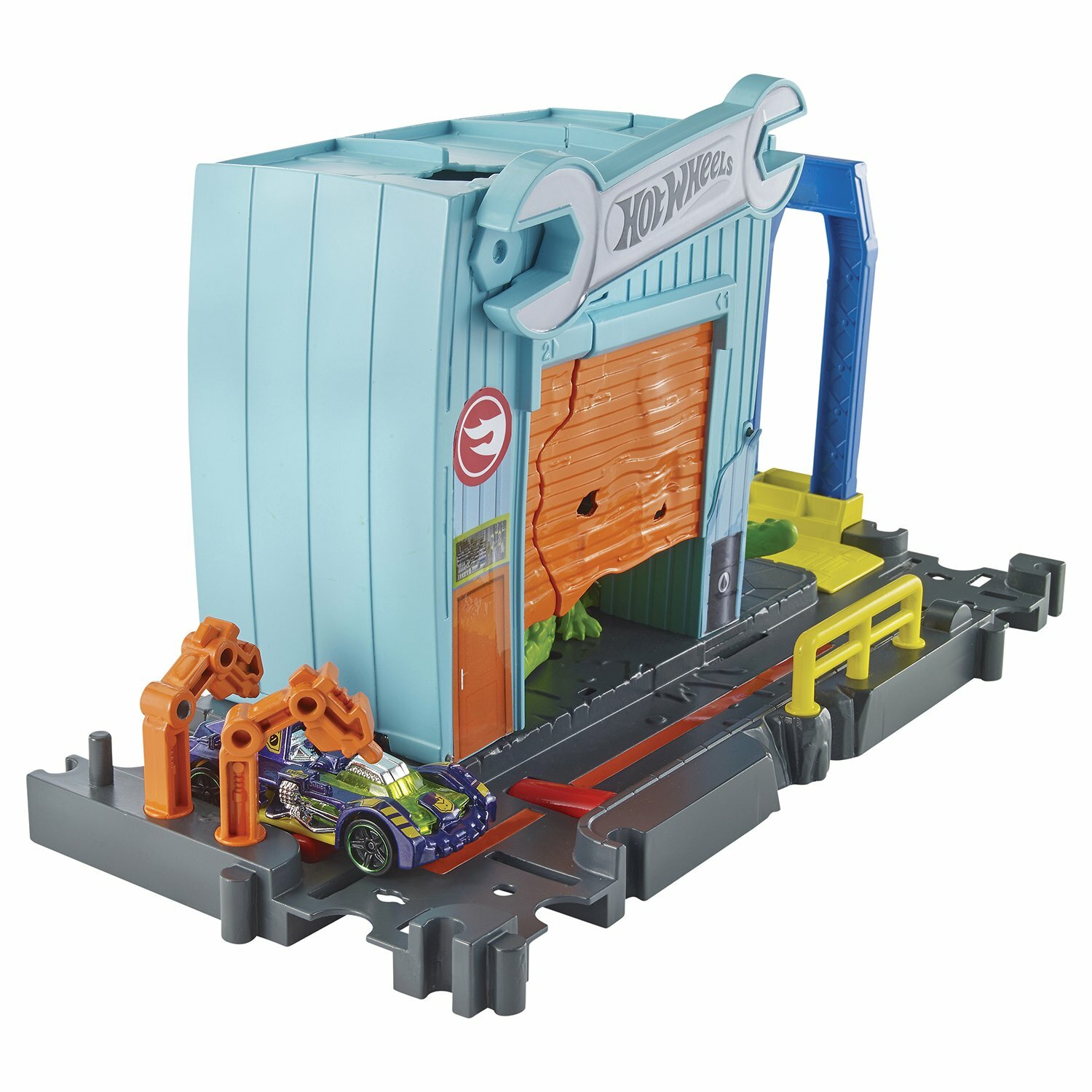 Направляй машинку в дверь заброшенного дома, используя 3 уровня трамплина и мощную систему запуска. Нужно обнаружить паука, заставить его вылезти из убежища и завалить на спину. К набору можно подключить 4 дорожки, одна из них будет проходить под домом.