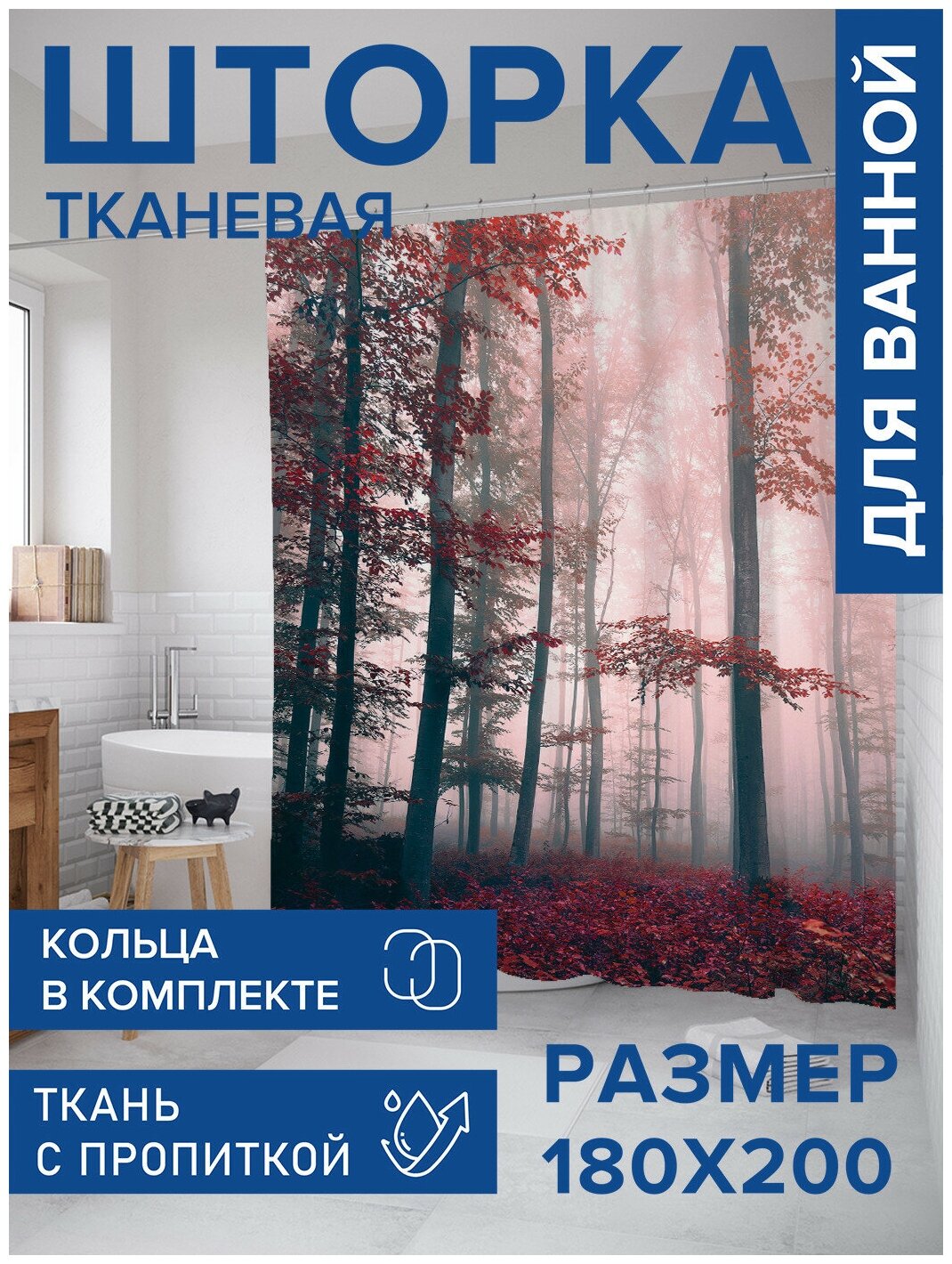 Шторка-занавеска для ванной JOYARTY Штора-занавеска для ванной из сатена с крючками Загадка леса 200х180 см (размер: 180х200)