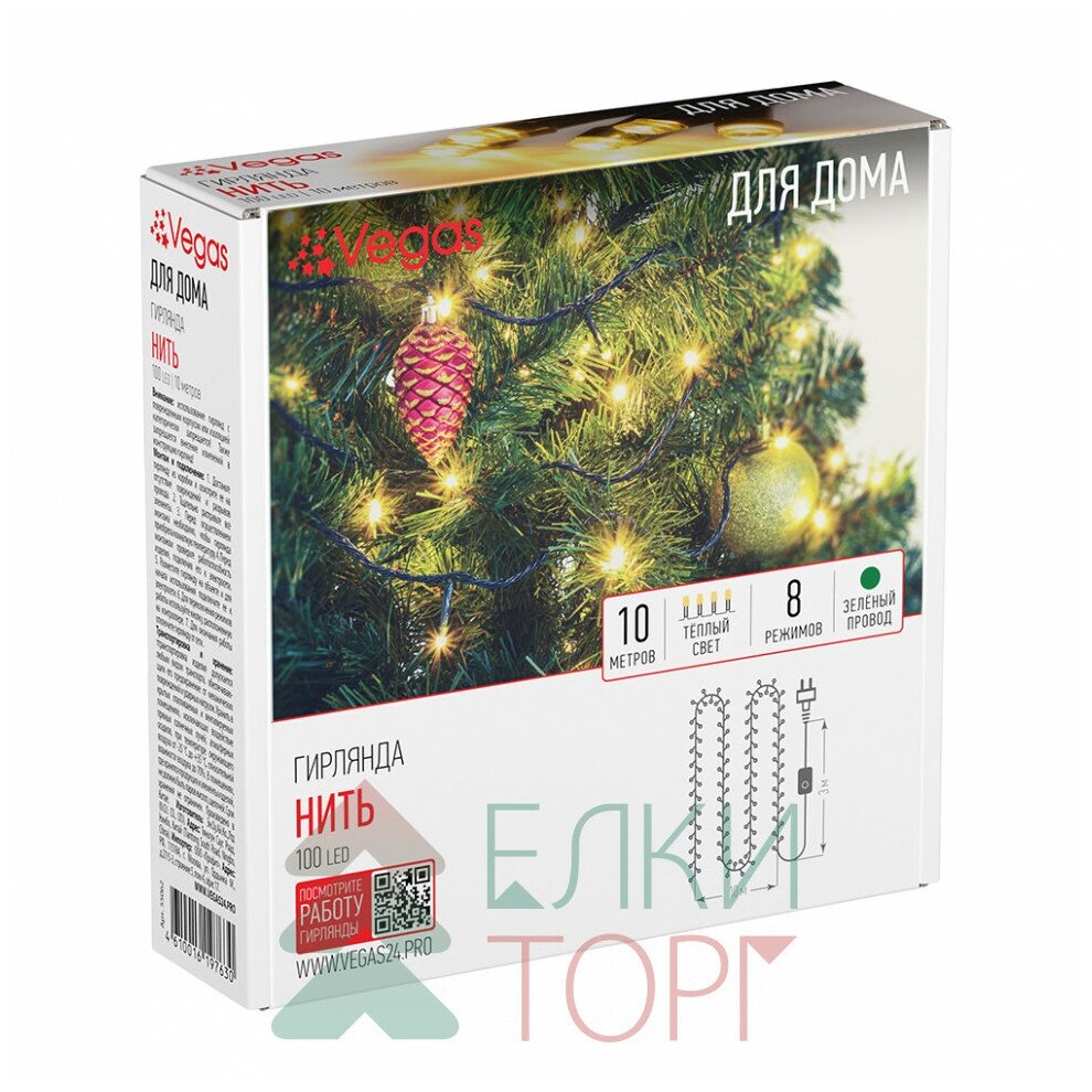 - Электрогирлянда Нить 100 теплых LED ламп, 8 режимов, 10м (Vegas) обзор 55062