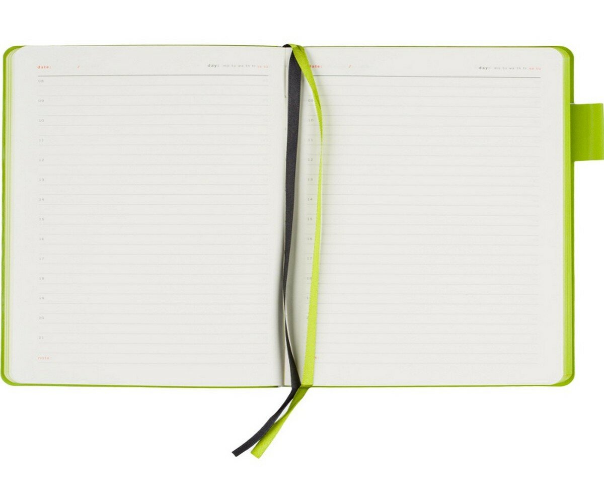 Ах, это элегантное двойное ляссе! Одна небольшая деталь так выгодно выделяет ежедневник Boston на фоне остальных. Шероховатый материал обложки придает благородства, а цветной обрез сдержанности и дерзости одновременно. Цвета двойного ляссе великолепно сочетаются с черным цветом недатированного ежедневника Boston от Bruno Visconti.