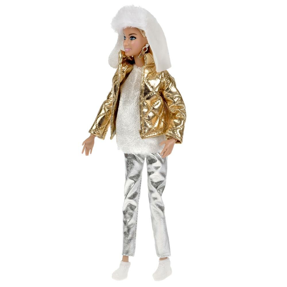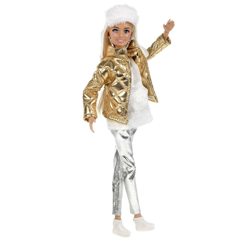 Будущая мама София одета в серебристые брюки, пушистый белоснежный свитер и золотистый пуховик. Образ куколки дополняют стильные крупные серьги и белая шапочка с мехом. Одежду и аксессуары легко снять и надеть. С такой модной куклой девочке будет интересно и весело играть: благодаря тому, что руки и ноги куклы подвижны, им можно придать любое положение. У Софии длинные красивые волосы, которые собраны в хвост. При желании хозяйка куклы сможет их расплести и заплетать в разные причёски. Детально проработанный дизайн игрушки вдохновит девочку на новые игровые сюжеты.