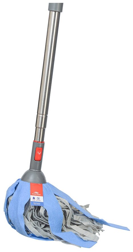 Швабра для мытья пола с насадкой из вискозы Bucket – эффективно удаляет грязь и пыль на всех видах напольных покрытий.Насадка из вискозы подходит для влажной уборки полов из дерева, линолеума, керамогранита, ламината и кафеля. Абразивная нашивка помогает эффективно удалять засохшие пятна. Телескопическая ручка длиной 90 см может раздвигаться до 160 см. Она выполнена из прочной нержавеющей стали. Ручка дополнена пластиковым колпачком с петлей для хранения. Передвижную пластиковую рукоятку можно фиксировать на любой высоте для комфортного использования. Швабра Bucket отлично сочетается с ведром марки Nordic Stream