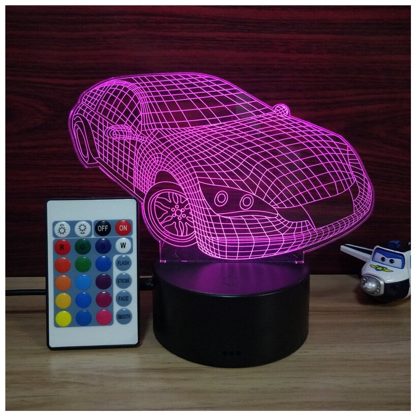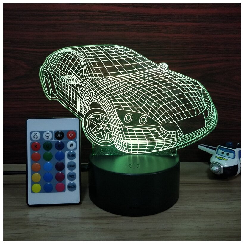 Необычный светодиодный светильник-ночник. Технология 3D проецирования на органическом стекле за счет света создает фантастическую иллюзию объемного изображения. Рисунок состоит из тонких линий. Поддерживается 7 вариантов цветов подсветки. Включение осуществляется прикосновением к сенсорной кнопке.
