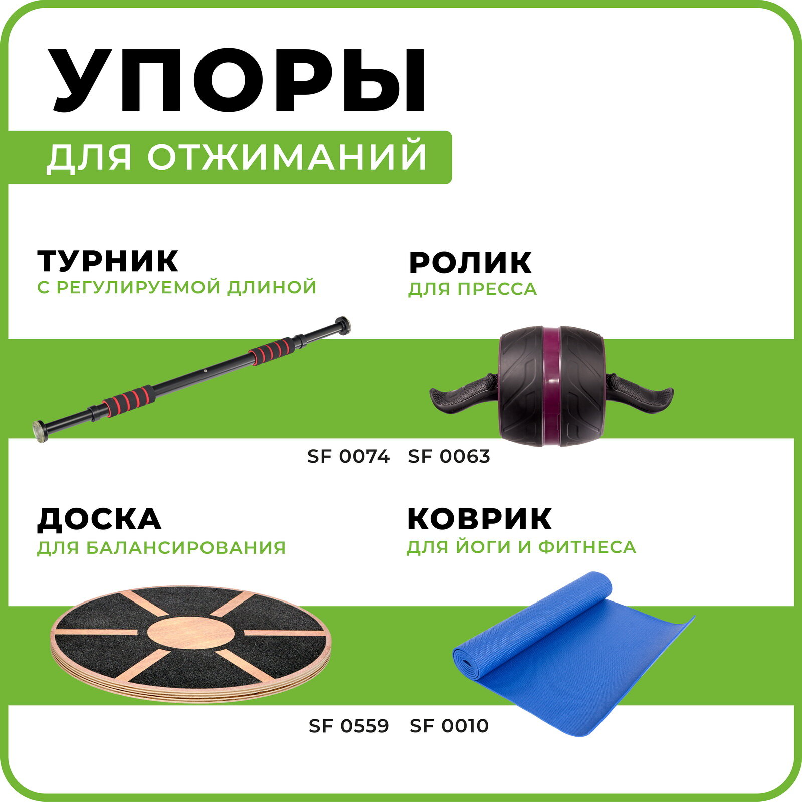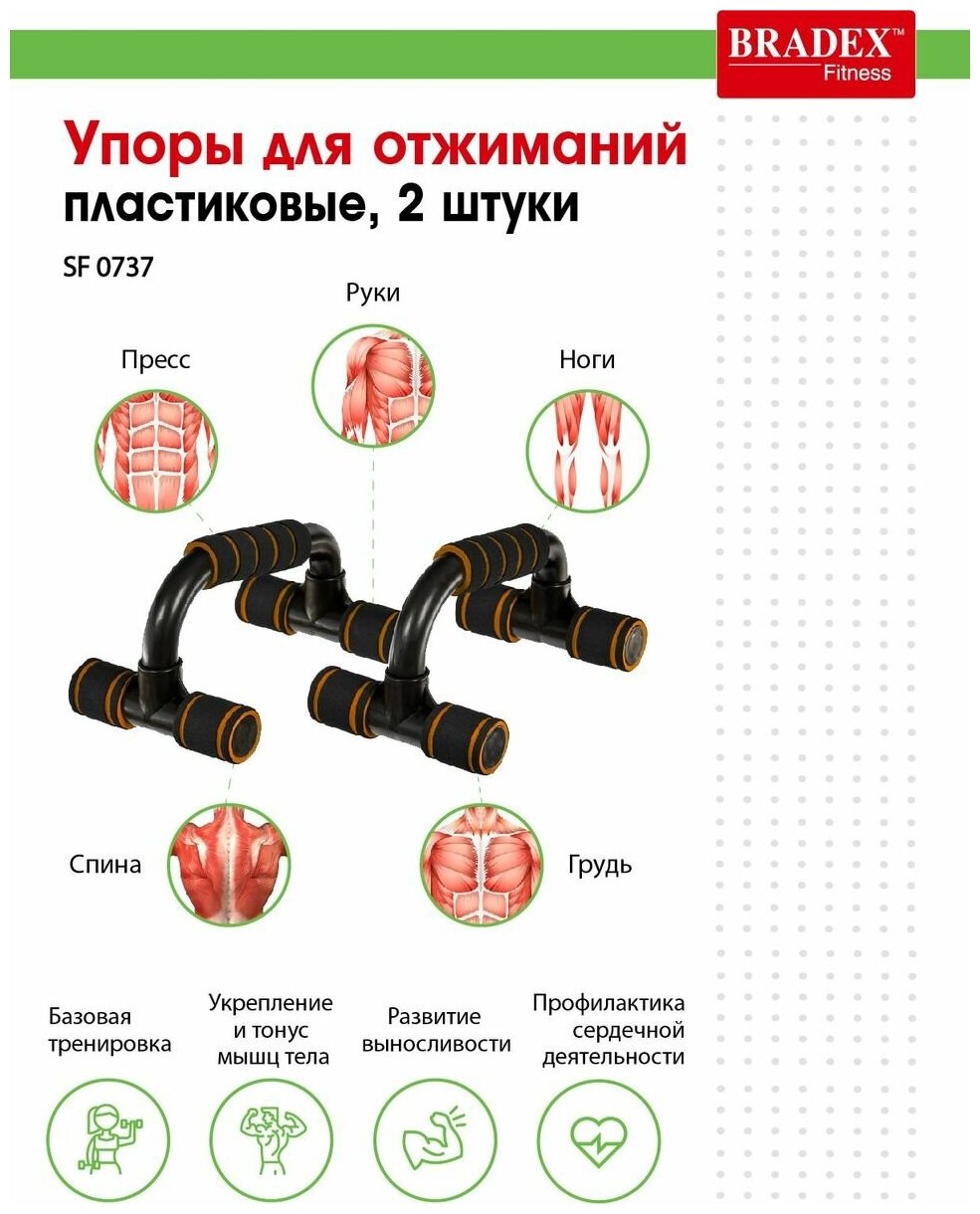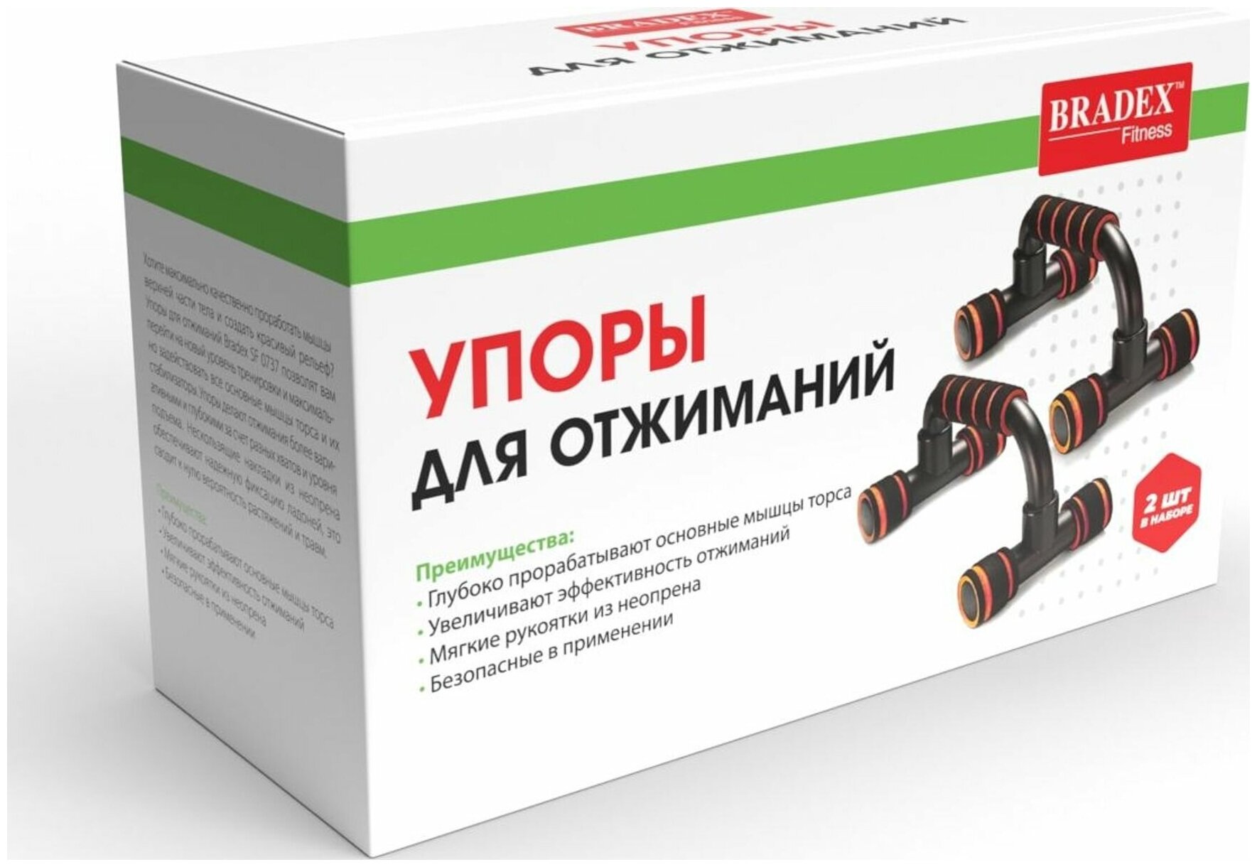 Хотите максимально качественно проработать мышцы верхней части тела и создать красивый рельеф? Упоры для отжиманий Bradex SF 0737 позволят вам перейти на новый уровень тренировки и максимально задействовать все основные торса и их стабилизаторы. Упоры делают отжимания более вариативными и глубокими за счет разных хватов и уровня подъема. Нескользящие накладки из неопрена обеспечивают надежную фиксацию ладоней, это сводит к нулю вероятность растяжений и травм.