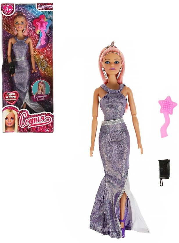 Модница София одета в роскошное вечернее платье из блестящей ткани, образ дополнен крупными серьгами и изящной сумочкой. С такой модной куклой девочке будет интересно и весело играть: благодаря тому, что руки и ноги куклы подвижны, им можно придать любое положение. У Софии длинные красивые волосы, которые хозяйка куклы сможет заплетать в разные причёски. Детально проработанный дизайн игрушки вдохновит девочку на новые игровые сюжеты.