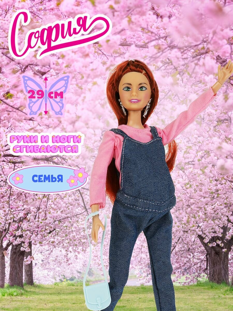 Будущая мама София одета в удобный розовый свитер и джинсовый комбинезон. Образ куколки дополняют модные крупные серьги и элегантная сумочка. Её сын предпочёл джинсы, серый свитшот и стильный пиджак. Одежду и аксессуары легко снять и надеть. С такими модными куклами девочке будет интересно и весело играть: благодаря тому, что руки и ноги Софии подвижны, им можно придать любое положение. У куклы длинные красивые волосы, которые хозяйка куклы сможет заплетать в разные причёски. Детально проработанный дизайн игрушки вдохновит девочку на новые игровые сюжеты.