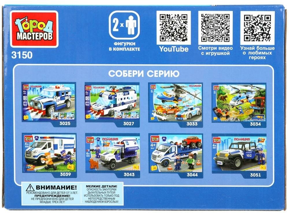 С помощью этого занимательного конструктора ваш ребёнок может собрать реалистичный банкомат, полицейскую машину и помочь храброму служителю правопорядка поймать грабителя. Набор вдохновит малыша на новые увлекательные сюжеты для игр и станет гордостью его игрушечной коллекции.