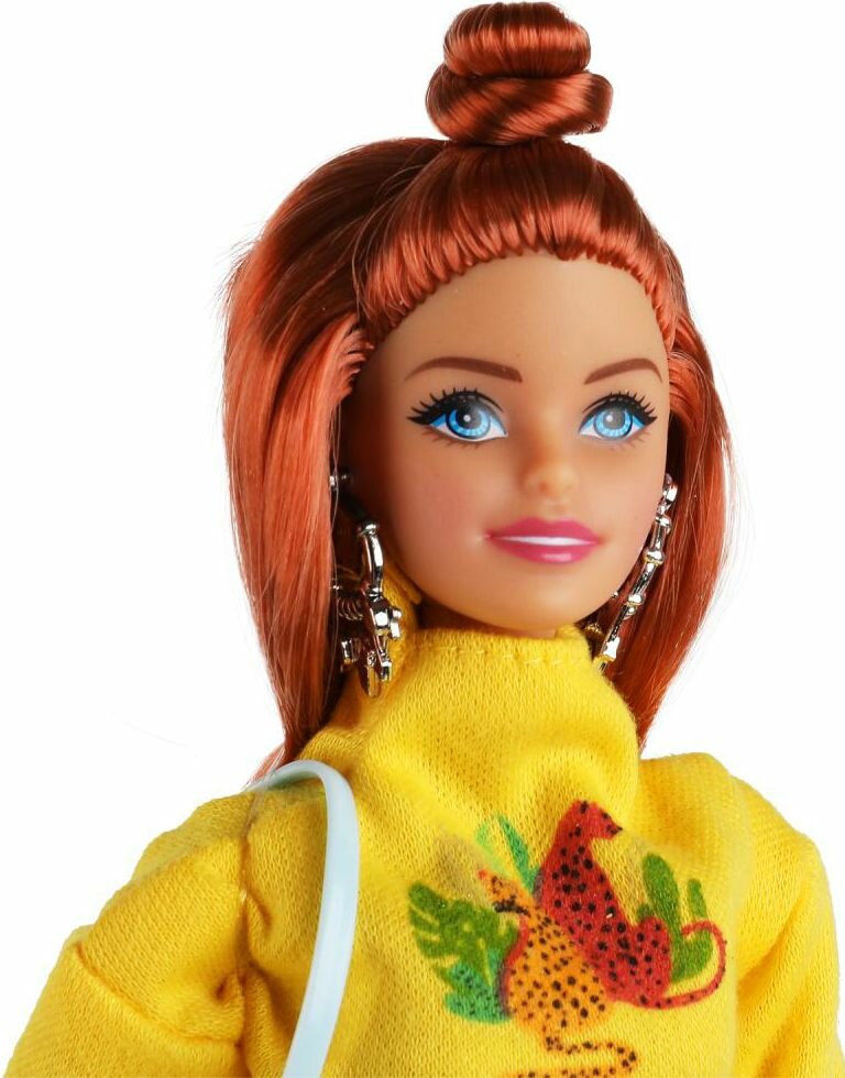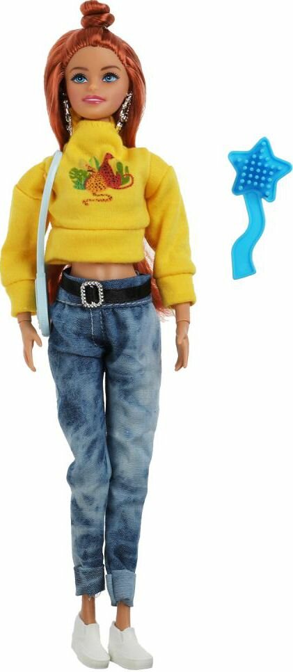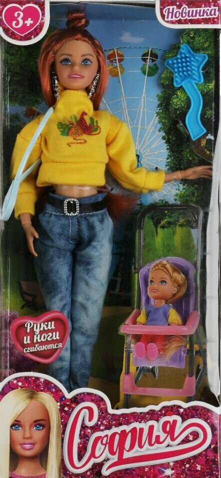 Модница-София одета в стильные джинсы с высокой талией и яркую водолазку с принтом. Образ дополняют стильные крупные серьги, модный ремень и элегантная сумочка. Одежду и аксессуары легко снять и надеть. С такой модной куклой девочке будет интересно и весело играть: благодаря тому, что руки и ноги куклы подвижны, им можно придать любое положение. У Софии длинные красивые волосы, которые хозяйка куклы сможет заплетать в разные причёски. Детально проработанный дизайн игрушки вдохновит девочку на новые игровые сюжеты.