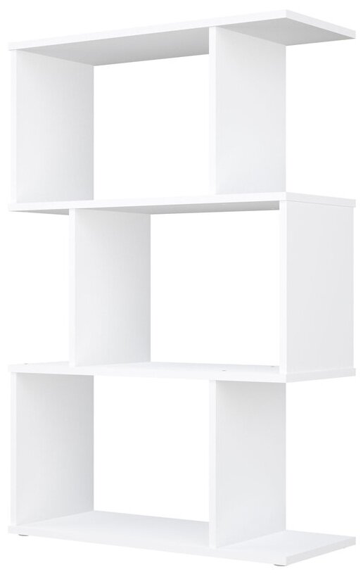 Модель имеет 3 секции. Крепится к стене с помощью специальных болтов и уголков из комплекта. Материал изделия: ЛДСП. Стеллаж подходит для хранения предметов или книг, зонирования жилого помещения и оформления интерьера. Может устанавливаться как в детской, так и в любой другой комнате квартиры. Нарядный белый цвет вписывается в большинство современных квартир.