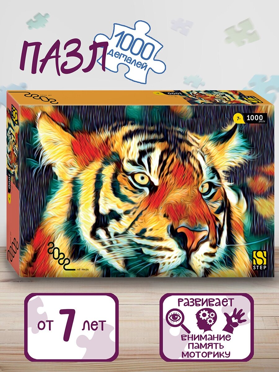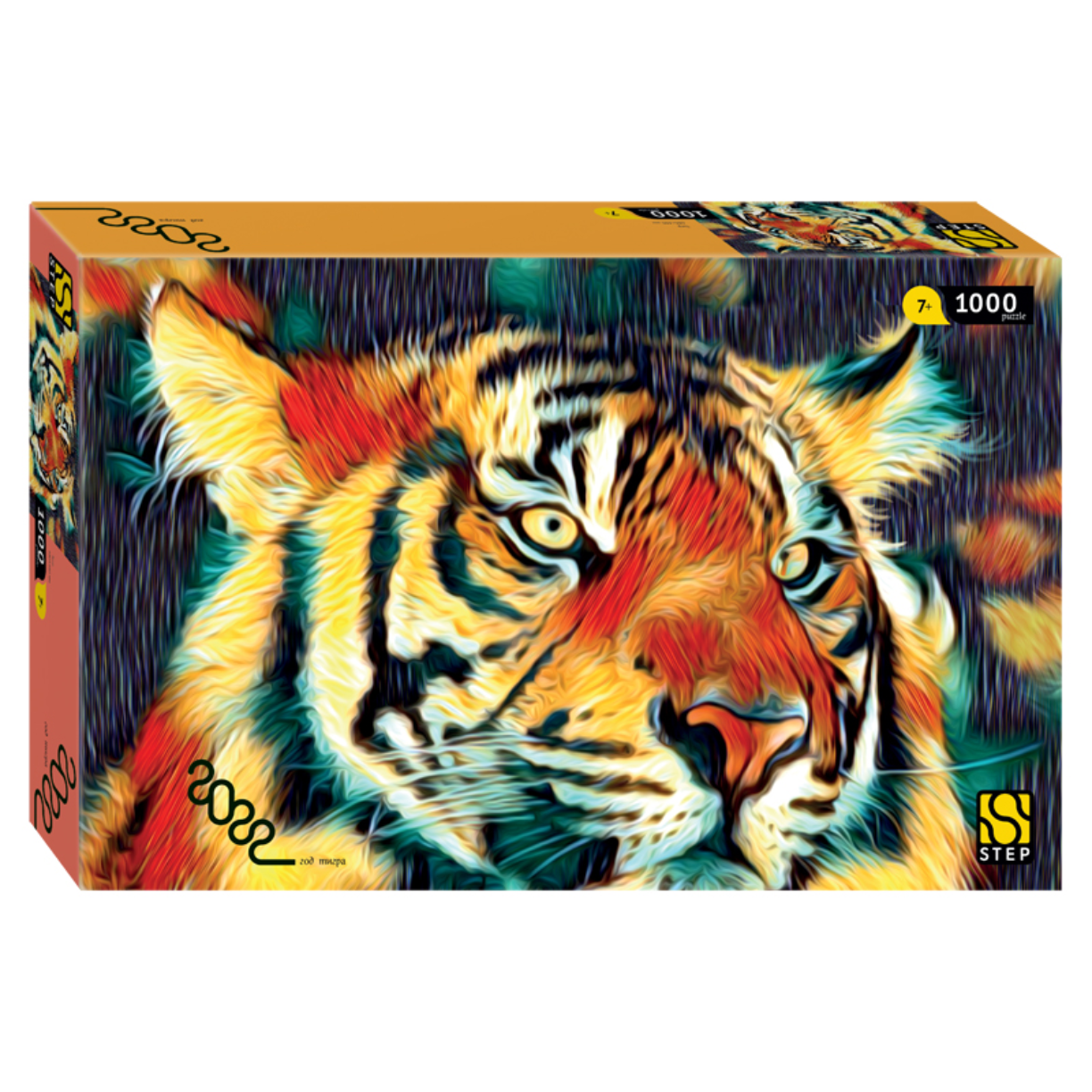 Пазл "Тигр" (Символ года ) состоит из 1000 элементов. Он подойдет детям от 7 лет и взрослым. Своенравный и грациозный хищник придет на смену Быку и полноценно вступит в свои права уже в 2022 году. Астрологи ко встрече Нового года Тигра рекомендуют выбирать не только одежду в цветах водной стихии, но и тщательно продумать детали декора. На елку можно повесить фигурку строптивого животного, а под нее - поставить собранный пазл с изображением хищника. Новая картинка впечатляет разнообразием цветов: изображение станет отличным дополнением любого интерьера, а сам пазл - лучшим подарком для родных и близких.