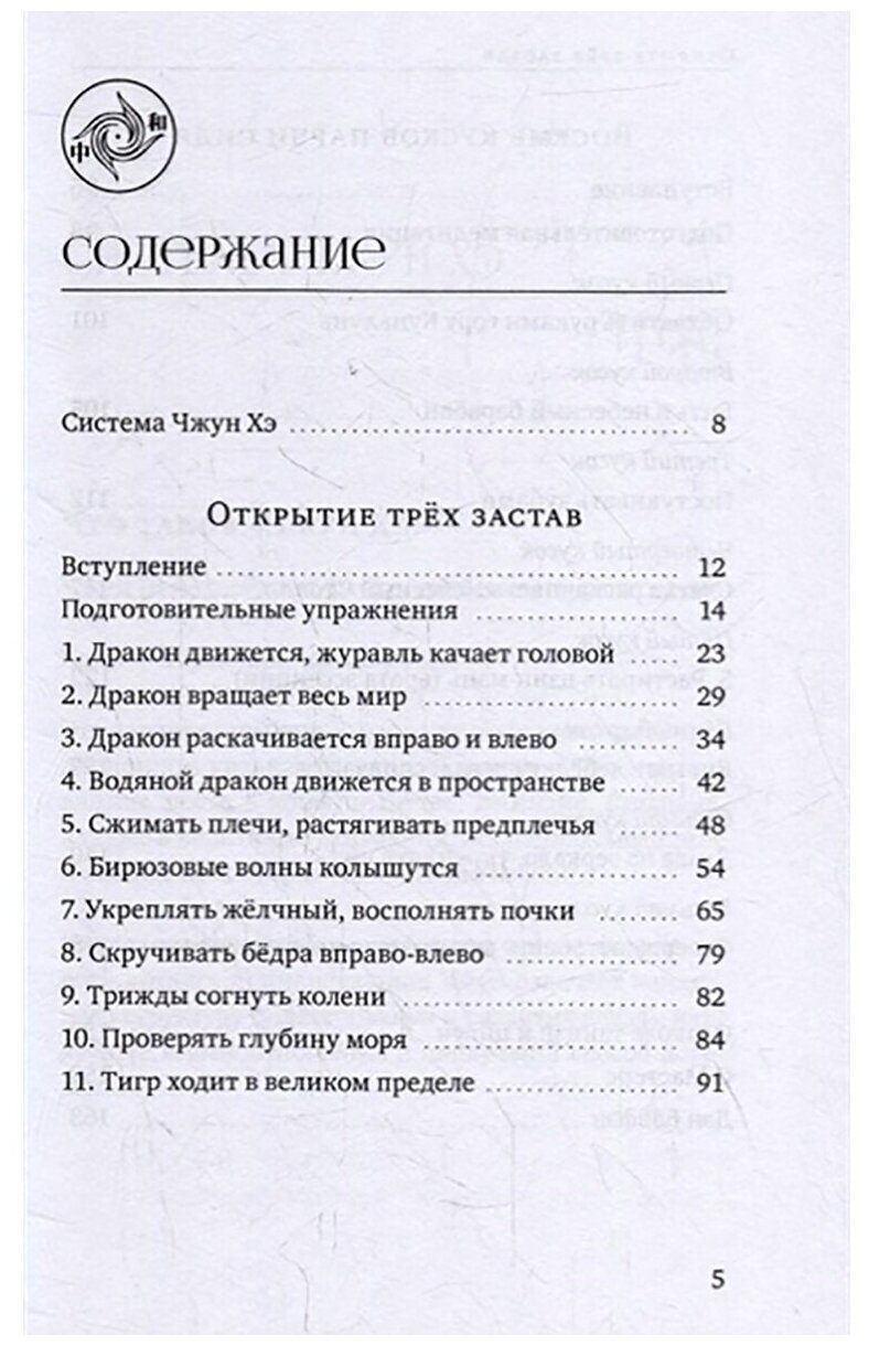 В книге представлены два комплекса: "Открытие трёх застав" для оздоровления позвоночника и "Восемь кусков парчи сидя" для всего тела. Оба комплекса состоят из простых, но очень эффективных упражнений для любого уровня физической подготовки, для любого возраста и состояния здоровья. Множество фотографий (более 200) позволяют с лёгкостью выполнять все упражнения самостоятельно.