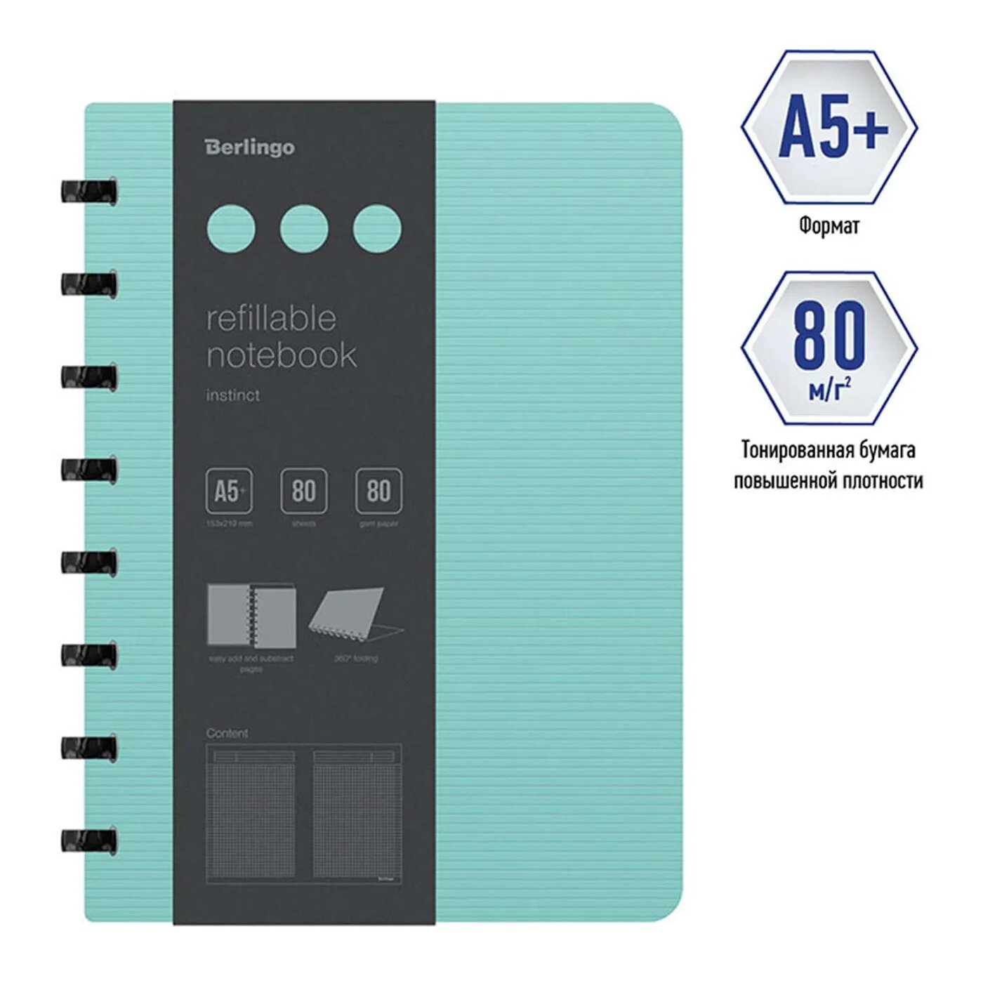 На сегодняшний день товар «Бизнес-тетрадь на кольцах 80л "Instinct" RNt_A5103 Berlingo» можно купить с кешбеком в 1 магазине: Яндекс.Маркет