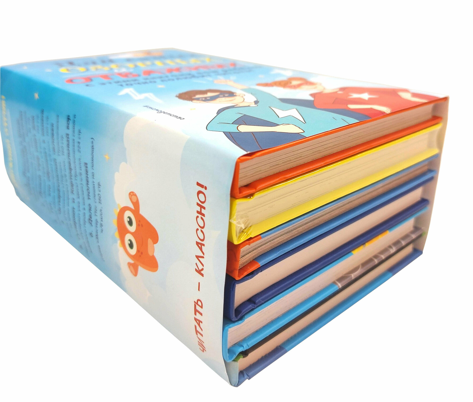 Этот удивительно красивый комплект станет прекрасным подарком для юного читателя, который только начинает открывать для себя мир книг. Здесь его встретят самые разные истории: про весёлых зверей детективов, пса-спасателя, школу охотников на монстров, отель для инопланетян, кота-супергероя и доисторического домашнего питомца! Все книги совершенно разные - они из разных серий и с разным оформлением, но все они одинаково увлекательные и простые для восприятия! Книги ярко оформлены, и в них вас ждут забавные цветные или чёрно-белые иллюстрации.