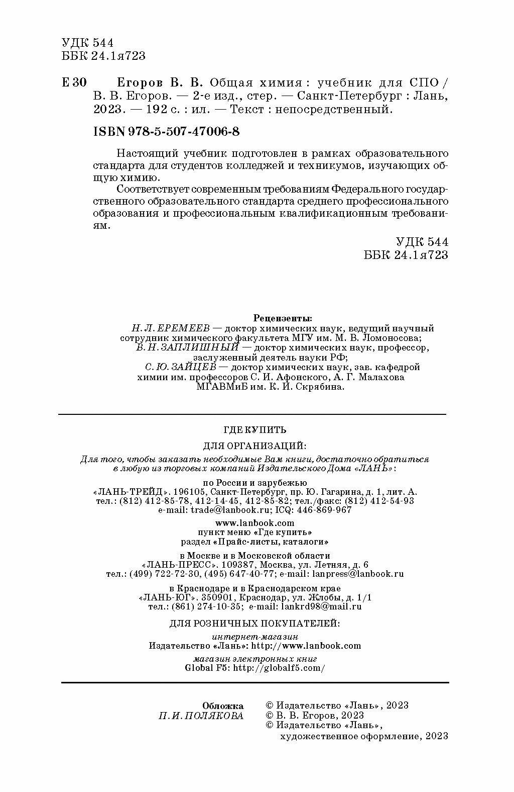 Сервис сравнения цен СкидкаГИД предлагает сравнить цены на товар «Книга: Общая химия. Учебник для СПО (Егоров Владислав Викторович); Лань, 2022»