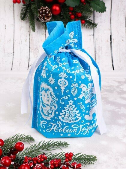 Мешочек для подарков поможет креативно преподнести любой новогодний презент! Он подойдет для упаковки игрушек, сувениров или конфет. Мешочек утягивается с двух сторон и завязывается на шнурок. Такая упаковка подарка очень практична, т. к. ее можно будет использовать и в повседневной жизни. Размер: 24х18х9 см.