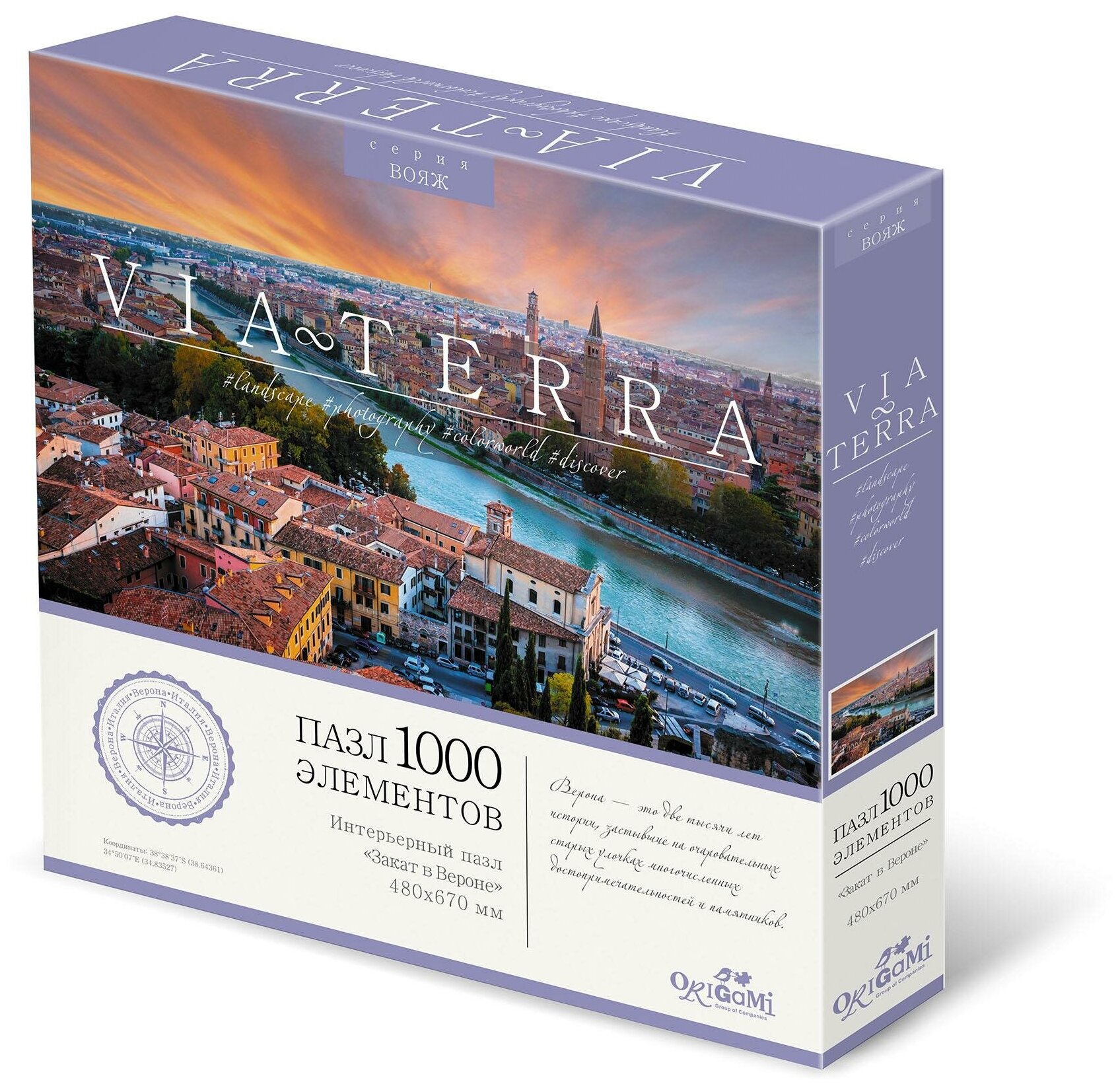 Пазл 1000 элементов "Закат в Вероне" - это интерьерный пазл, входящий в новую серию Via Terra. Красочные фотографии, взятые за основу серии, захочется собрать и взрослым и детям, а также пазл является отличным украшением любого интерьера! На каждой упаковке можно найти уникальное описание места, изображенного на ней. Сборка пазла - это отличное времяпрепровождение для всей семьи.