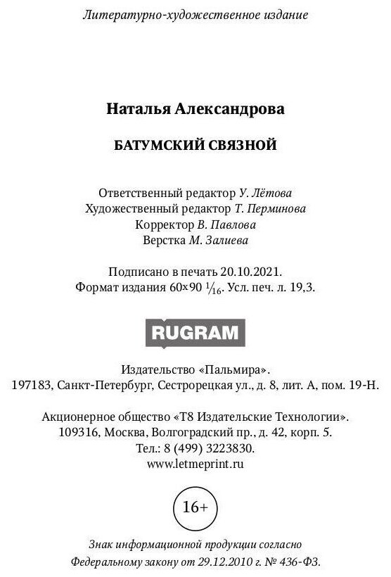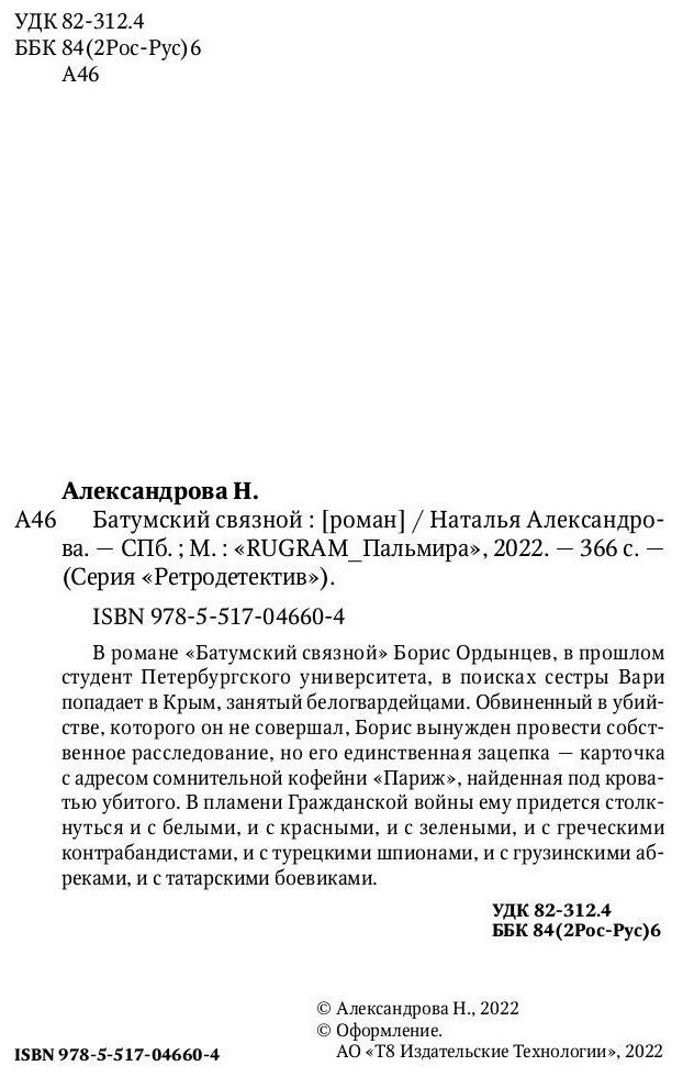 Книга: Батумский связной (Александрова Наталья Николаевна); РИПОЛ классик Группа Компаний ООО, 2022