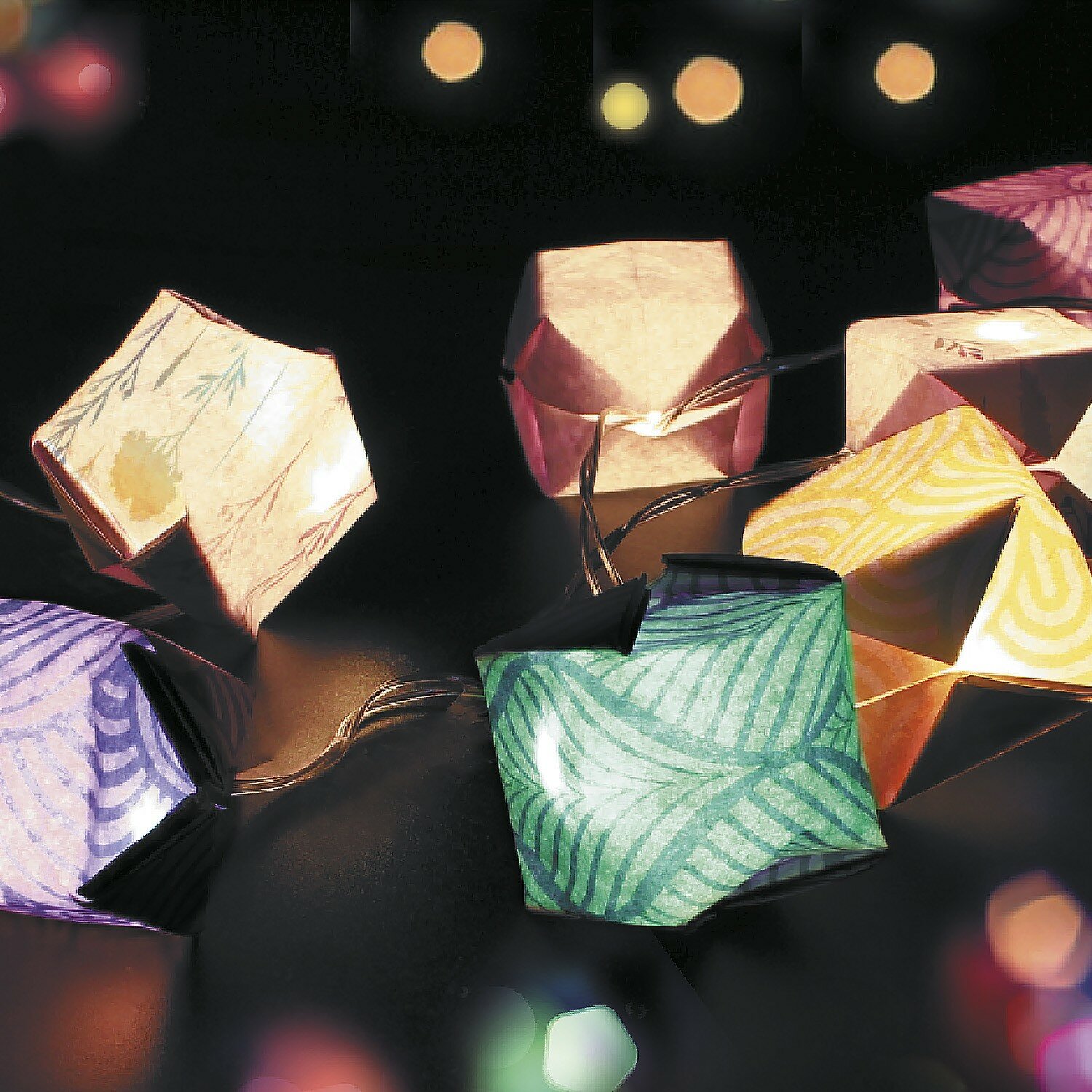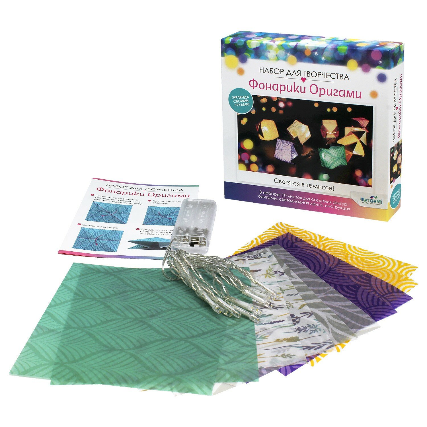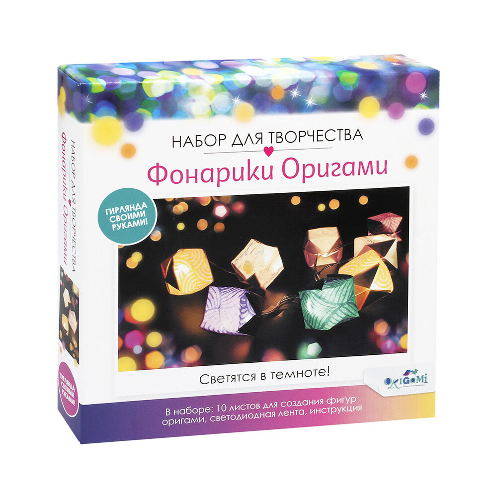 В наборе: 10 листов для создания фигур оригами, светодиодная лента, инструкция.
