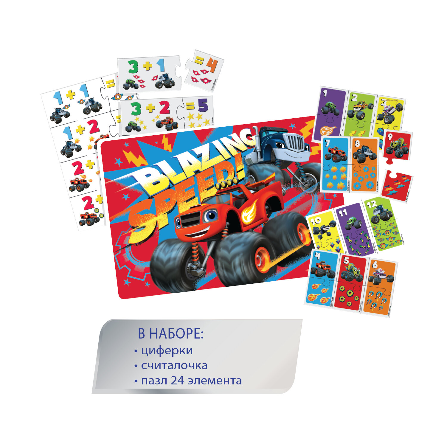| Комплектация | пазл 24 элемента; пазл цифры 24 детали; считалочка пазл 32 элемента |