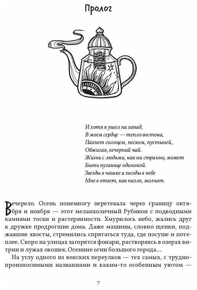 Что же происходит в незнакомом городе? Смотри, слушай и подмечай. Письма, двери, обрывки легенд - все сплетается в одну историю. Очередной учебный год встречает молодого студента чередой неудач. Загадочный продавец из чайной лавочки однажды дал слово, и теперь пришло время держать ответ. Послания, адресованные тихой девушке с нежным голосом, несут в себе угрозу - темную, почти осязаемую. А ловкий аферист, оказавшийся случайным участником событий, как водится, ищет лишь выгоды. Устраивайся поудобнее, поверь в чудо, и пусть в чашке растворится небесная синева.