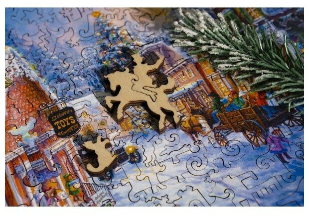 Небольшой тематический пазлик, подойдёт как подарок на ряд новогодних праздников. Не смотря на небольшое количество деталей оказался не простым. Если нет желания долго заниматься сборкой, то хорошо подойдёт чтобы скрасить вечер. Все детали запросто можно разложить перед собой, можно даже не сортировать. Меня не поразил скорее потому, что уже собирала пазлы с аналогичными сцепками, зимними завитушками, свечами и звёздочками. Подойдёт для совместного занятия с детьми дошкольниками.