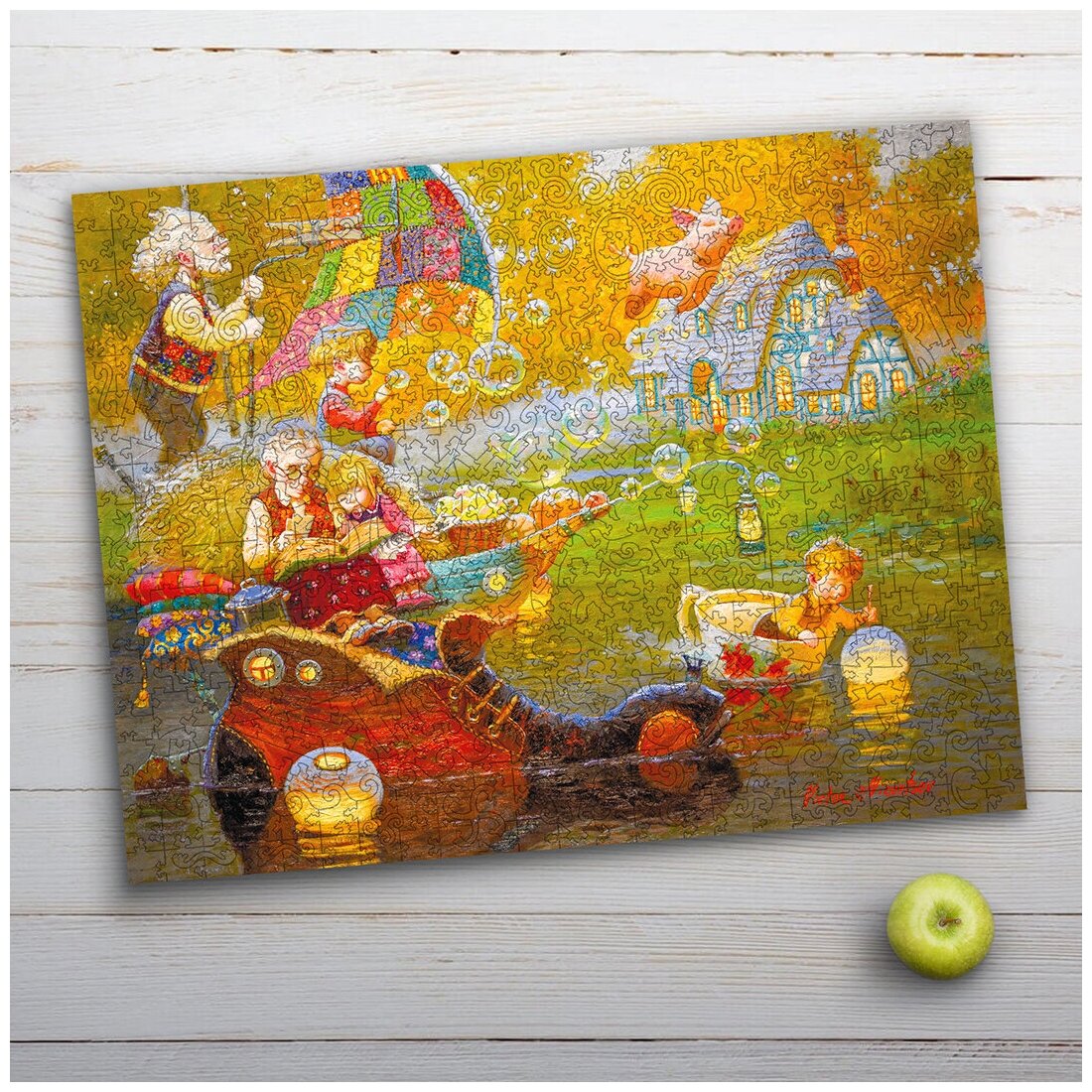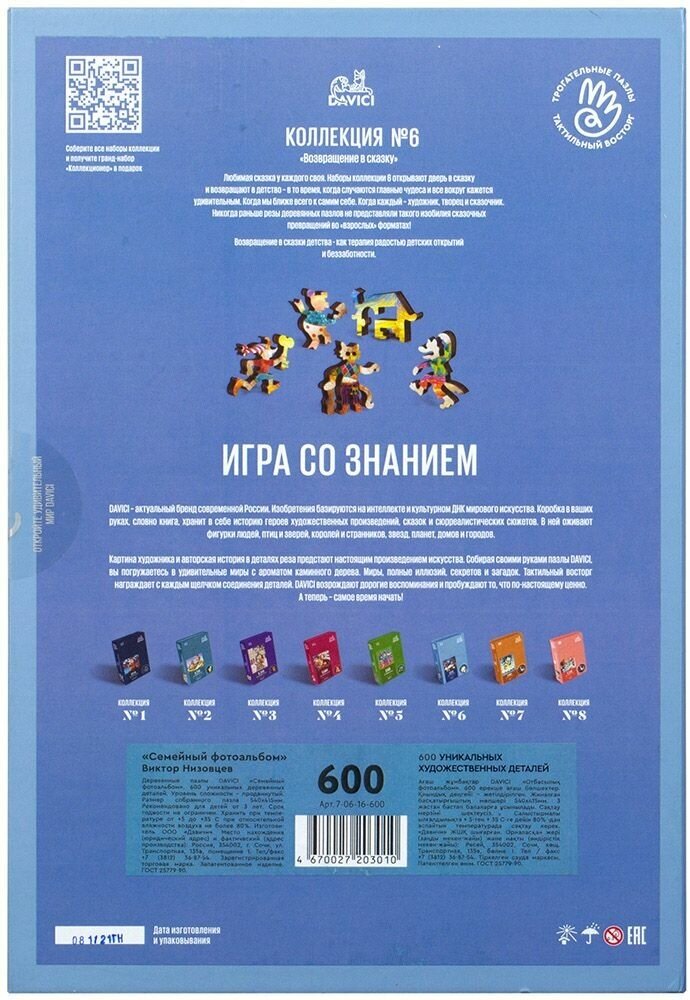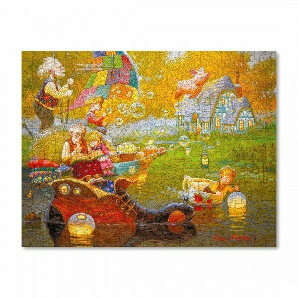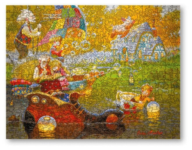 Пазл фантастический, пока собирала просто пищала от удовольствия. Большой и шикарный, очень красивый, красочный. На репродукции очень симпатичные сказочно мультяшные человечки. Сборка сложная, но это даже хорошо и правильно для такого крупного пазла. На обороте вырастает семейное дерево с окошечками где помещены члены семьи разного возраста. Очень рекомендую. Все пазлы в этой серии замечательные, а конкретно этот просто шедевральный.