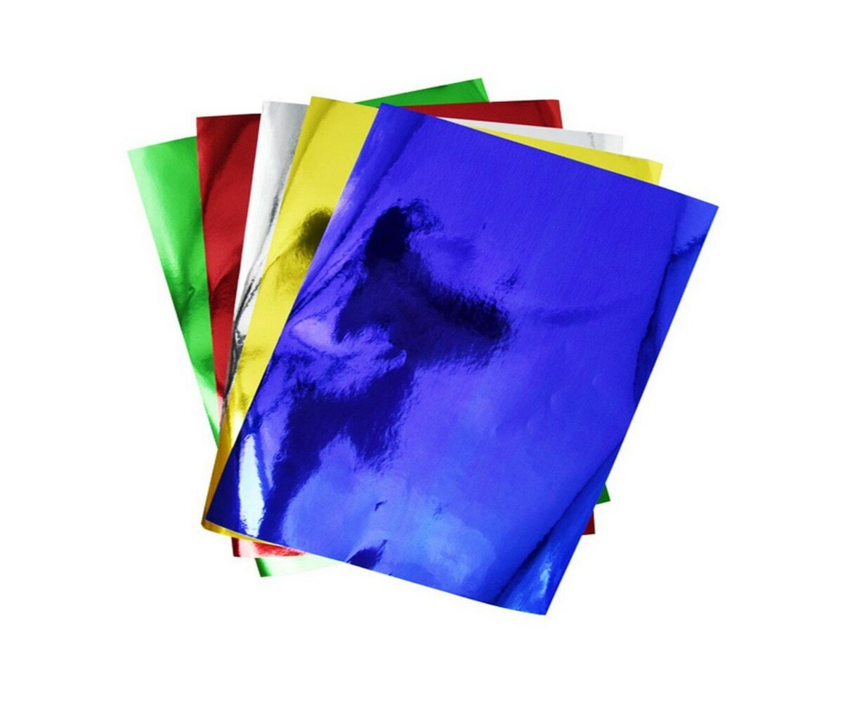 Цветная декоративная фольга, 5 листов, 5 цветов, формат А4, плотность 200 гр/м2. Внутренний блок - металлизированная пленка разных цветов с голографическим эффектом на бумажной основе. В наборе цвета: красный, зеленый, синий, золотой, серебряный.