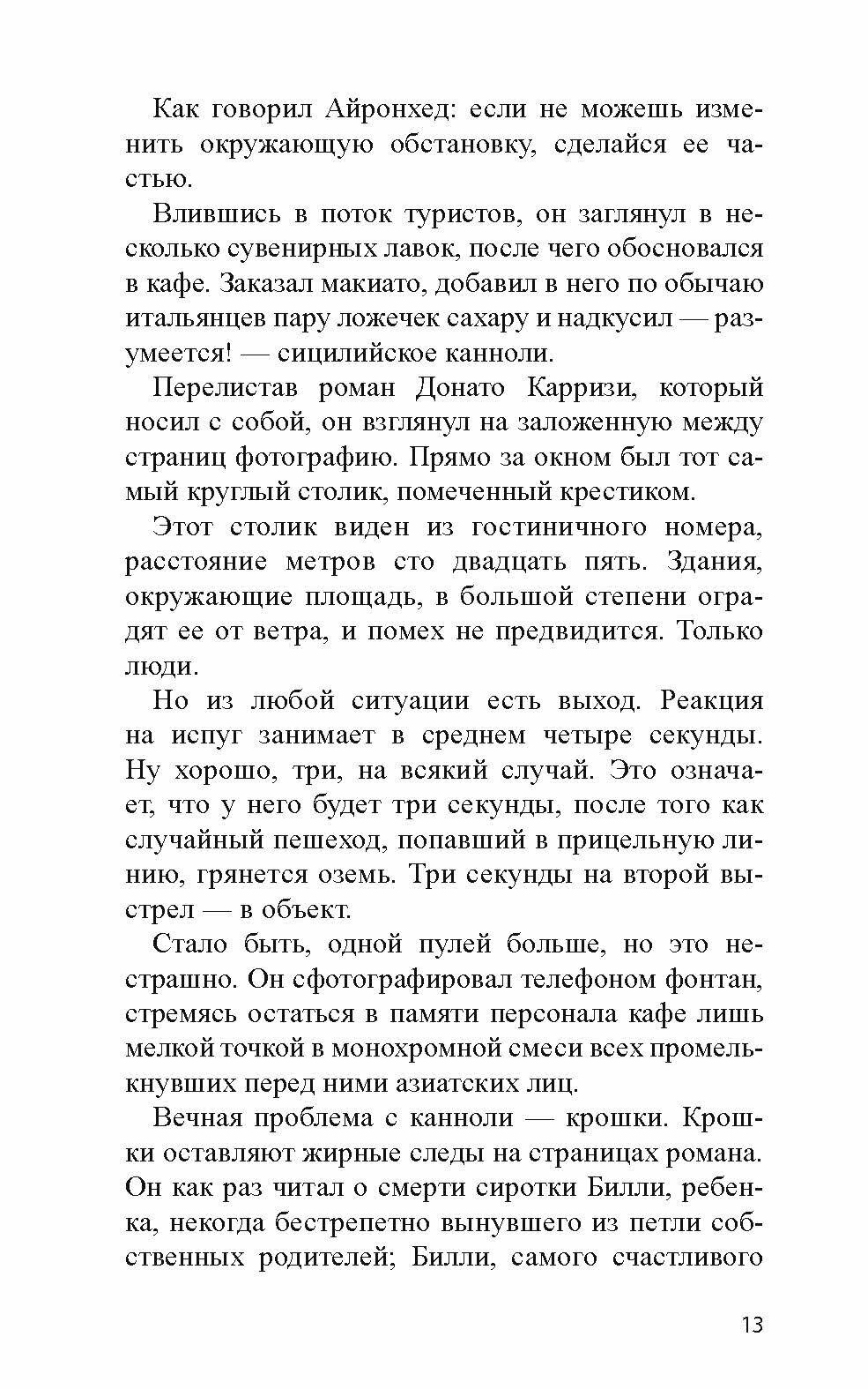 Читается книга легко, оттого даже как-то быстро... Не замечаешь, как пролетает время, рассказ увлекает. Захватывающий сюжет и способ его преподнести ( от лица молодого снайпера и от лица детектива У). Персонажи не тупые, вызывают интерес и даже симпатию. Много занимательных фактов про оружие, про политику, если вы чем-то таким увлекаетесь, то, помимо великолепного детектива, получите ещё и новую любопытную информацию.