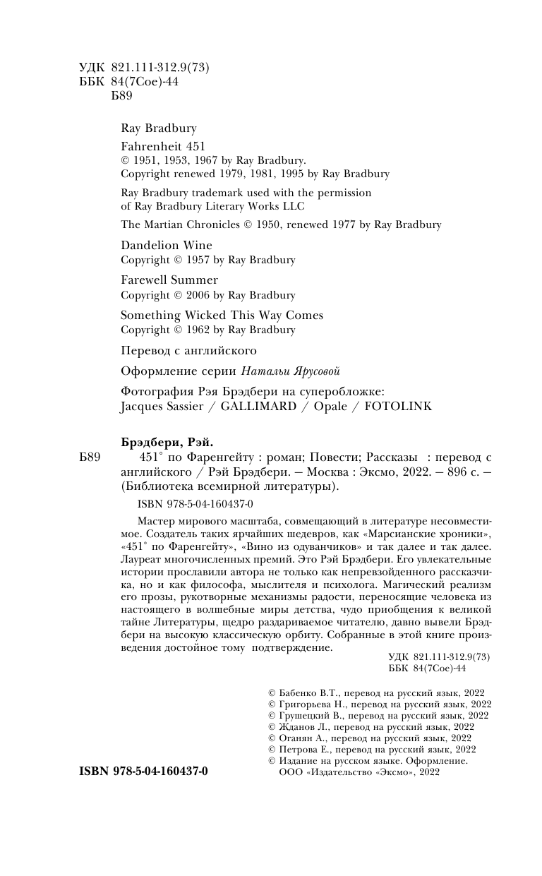 451' по Фаренгейту. Повести. Рассказы (Рэй Брэдбери); Эксмо, Редакция 1, 2021