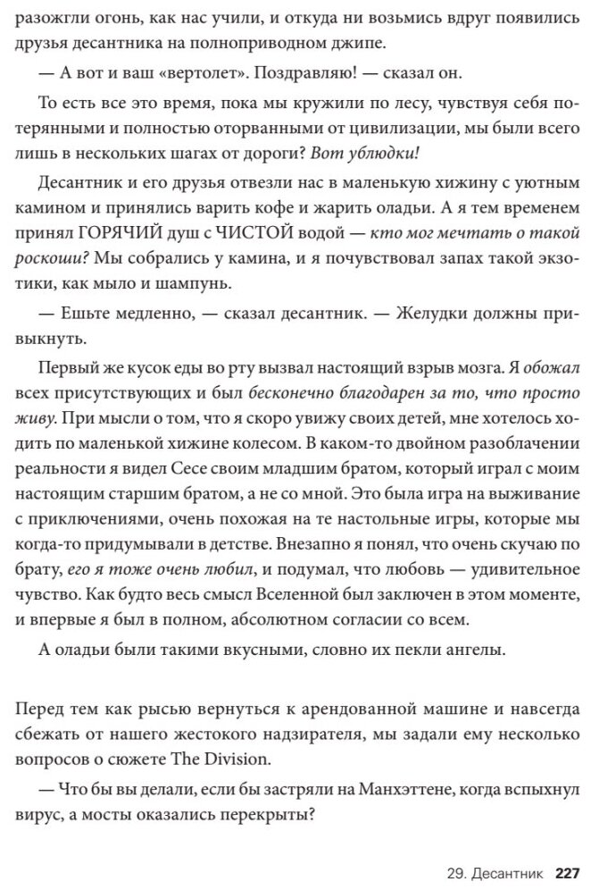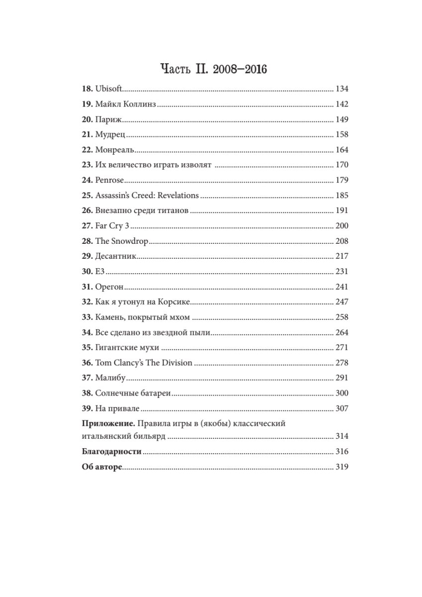 Потрясающий текст о великих играх. Единственное «но», больно бьющее по тексту и не дающее в полной мере насладится рассказанным — книга рассчитана на фаната. На человека, который уже в курсе некоторых секретов и пасхалок, который знаком с лором игр и в принципе понимает темп работы Ubisoft. Книга не поведёт по закоулкам мира видеоигр, разъясняя всё и вся, нет, такого здесь не будет. Необходима база для понимания некоторых частей и отрывков. Либо же сразу во время прочтения искать в сети ответы на незнакомые вопросы. Книга безумно интересная, говорю от лица фанта, и личная исповедь Дэвида Полфельдта берёт за душу, разбивая розовые очки, что всё в индустрии просто и понятно. Однозачно must have.