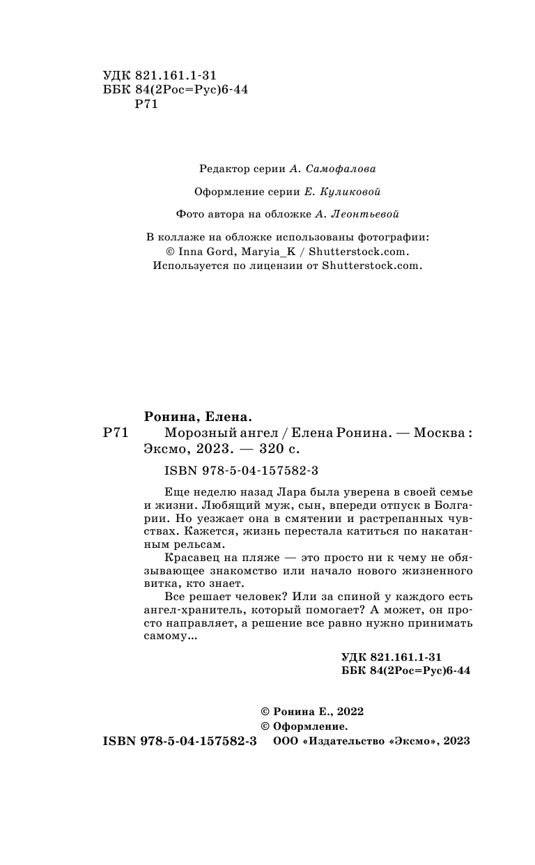 Книга: Морозный ангел (Елена Ронина); Эксмо, Редакция 1, 2022