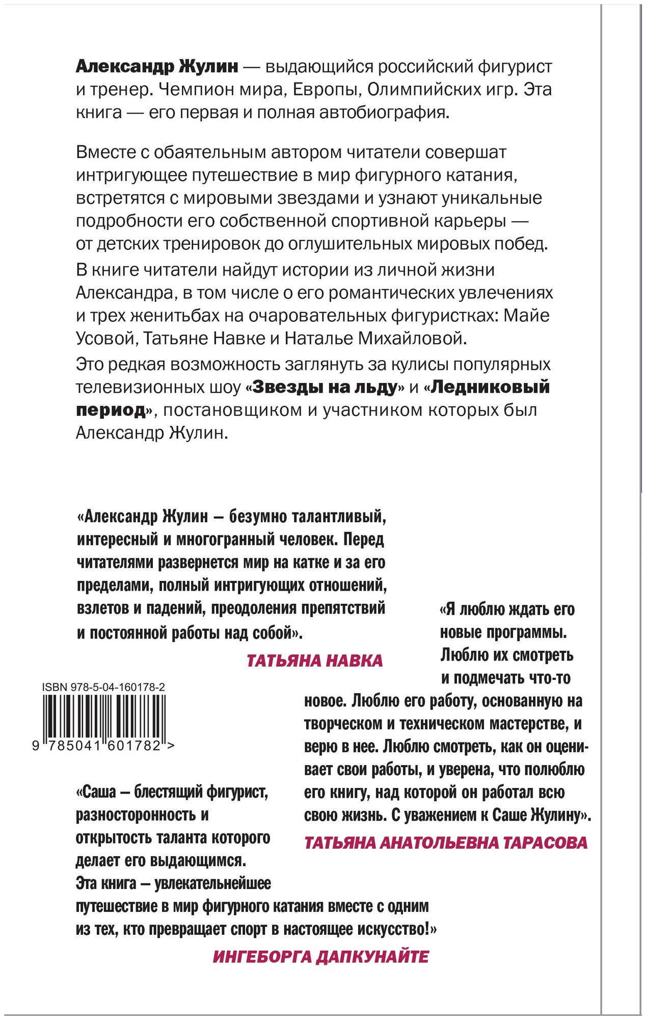 Александр Жулин с юмором и теплотой делится драматическими и даже трагическими историями. О спорте - от первых детских шагов до оглушительных мировых успехов на чемпионатах и олимпиадах. О своих трех женитьбах на очаровательных фигуристках: Майе Усовой, Татьяне Навке и Наталье Михайловой. О дорогих близких, друзьях, коллегах, тренерах. О постановке популярных телевизионных шоу "Звезды на льду" и "Ледниковый период". Из этих живых рассказов рождается портрет неординарного, энергичного и творческого человека, который умеет восхищать миллионы людей своим искусством и своими достижениями.