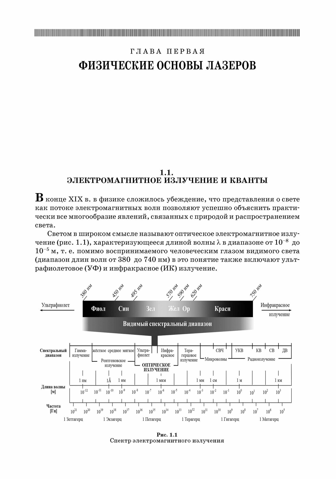 В книге рассмотрены физические принципы и конструкции лазеров, свойства лазерного излучения, вопросы, связанные с распространением лазерного излучения в средах и взаимодействием излучения с различными материалами.