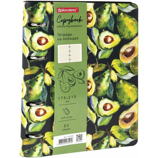 Тетрадь на кольцах Avocado 80 листов клетка А5 Brauberg 112130