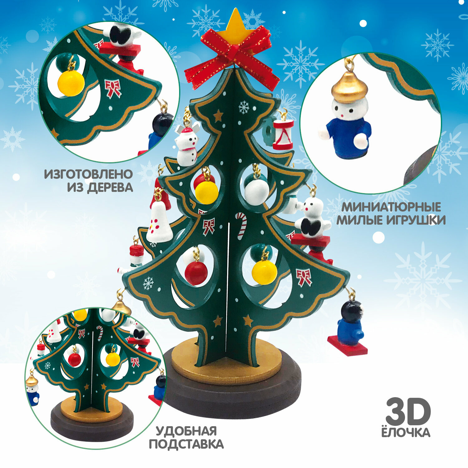 Набор Деревянная елочка 3D с игрушками Bondibon