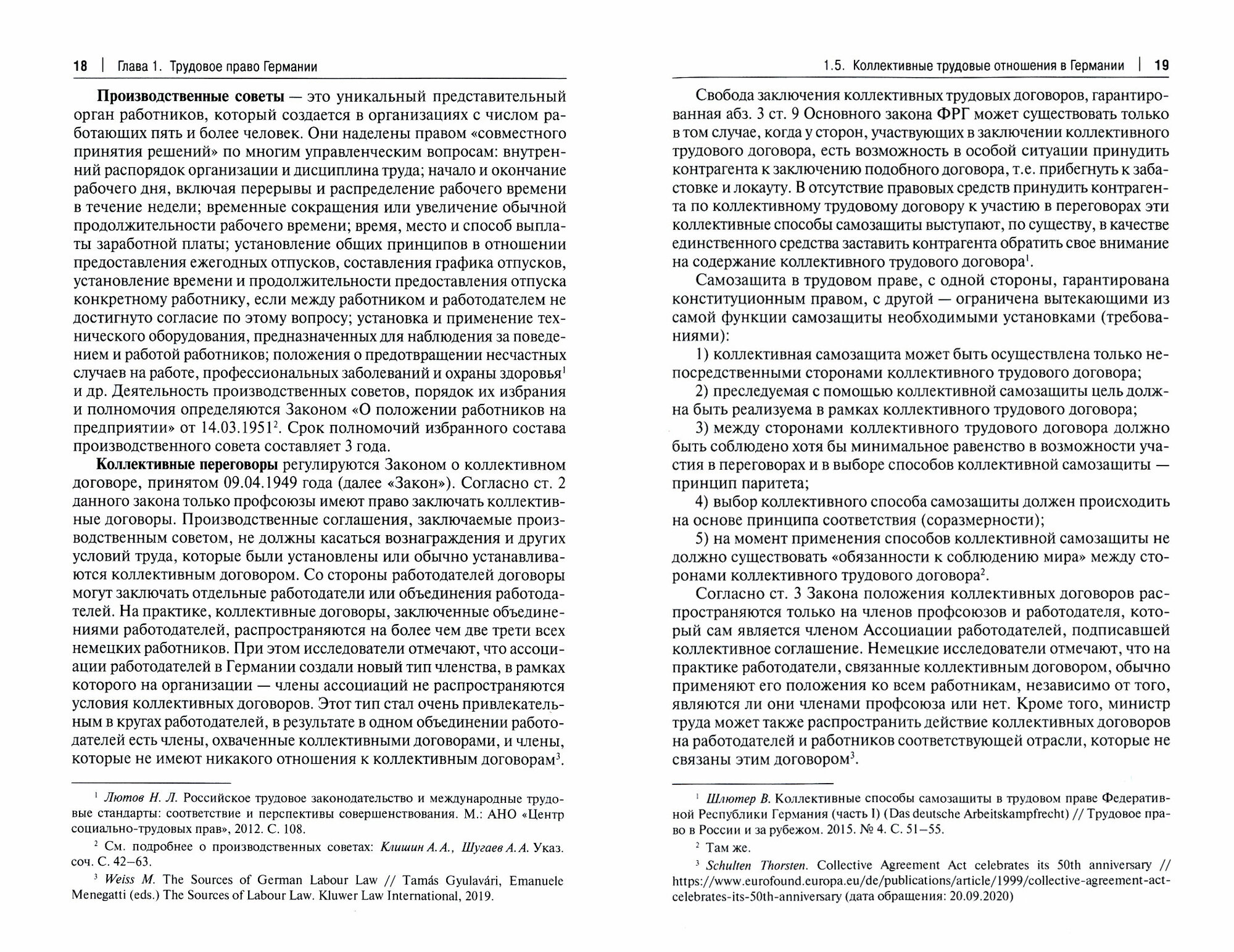 Каждая глава посвящена отдельной стране, в параграфах описаны источники трудового права каждой страны, роль международного права, нормы, посвященные таким институтам, как трудовой договор, заработная плата, рабочее время и время отдыха, коллективное трудовое право. В конце глав кратко рассмотрены основные аспекты специальных мер, принятых государствами в связи с пандемией COVID-19.