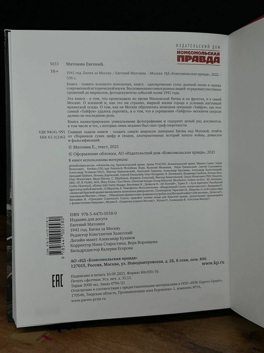 1941 год. Битва за Москву (Евгений Матонин); ИД Комсомольская правда, 2021