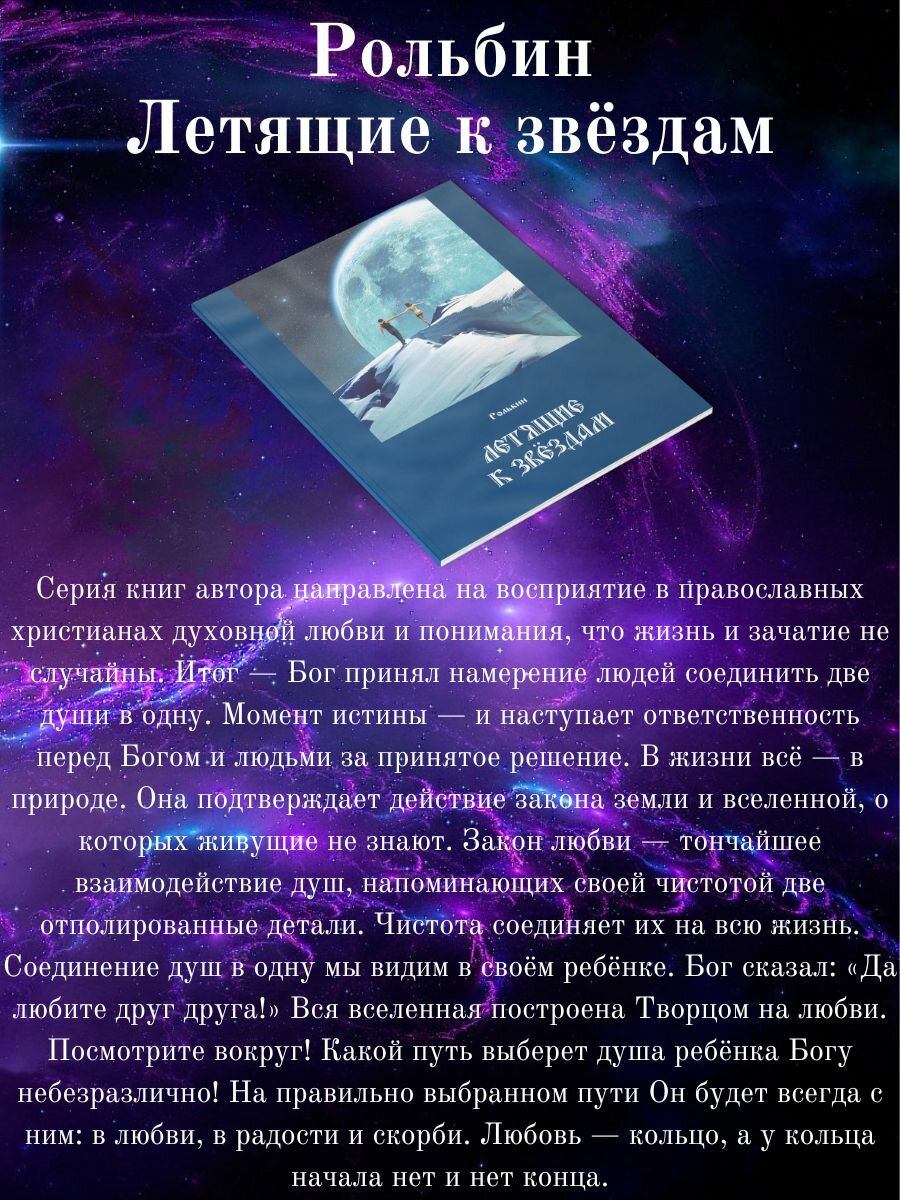 Серия книг автора направлена на восприятие в православных христианах духовной любви и понимания, что жизнь и зачатие не случайны. Итог - Бог принял намерение людей соединить две души в одну. Момент истины - и наступает ответственность перед Богом и людьми за принятое решение. В жизни всё - в природе. Она подтверждает действие закона земли и вселенной, о которых живущие не знают. Закон любви - тончайшее взаимодействие душ, напоминающих своей чистотой две отполированные детали. Чистота соединяет их на всю жизнь. Соединение душ в одну мы видим в своём ребёнке. Бог сказал: "Да любите друг друга!" Вся вселенная построена Творцом на любви. Посмотрите вокруг! Какой путь выберет душа ребёнка Богу небезразлично!