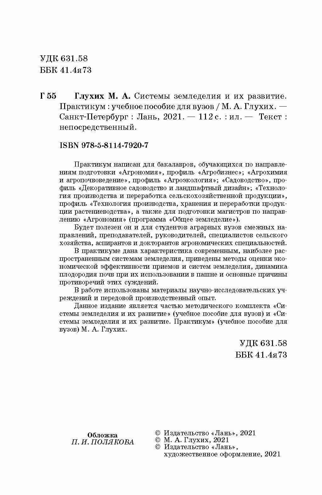 Данное издание является частью методического комплекта «Системы земледелия и их развитие» (учебное пособие для вузов) и «Системы земледелия и их развитие. Практикум» (учебное пособие для вузов) М. А. Глухих.