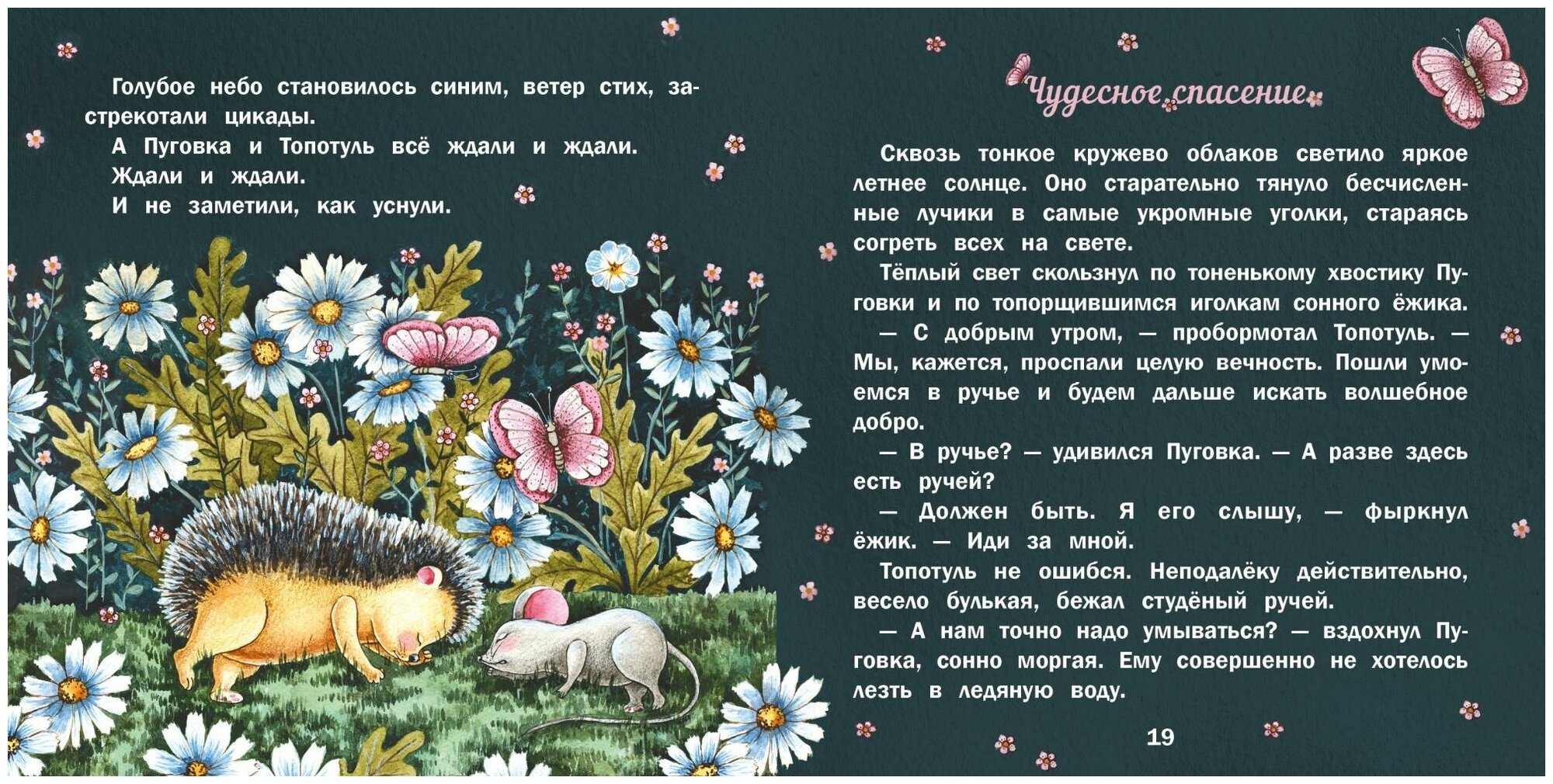 Маленький мышонок Пуговка услышал однажды, как мудрая сова говорила вороне, будто добро - это самое важное, и решил узнать: что же это за добро такое удивительное? Вдруг оно из сыра? Или блестит как драгоценный камень? Вместе со своим новым другом ёжиком Топотулем он отправляется на поиски добра.