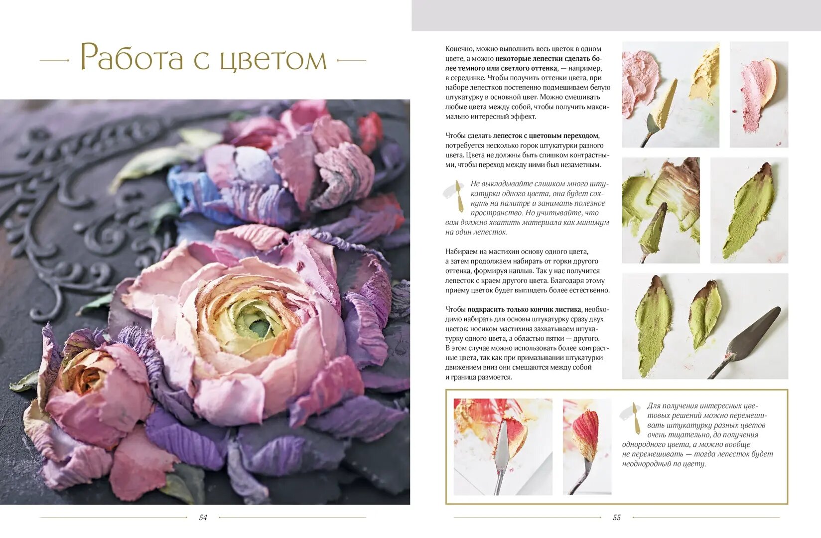 прекрасная книга от всемирно известного автора. очень подробные мастер классы, невероятно красивая палитра оттенков штукатурки Евгении завораживает превращением в великолепные цветы. в книге есть схемы как создавать цветы разные по сложности и расположению в плоскости и бонусные мастер классы для скачивания. 10 из 10. спасибо за такой приятный почти новогодний подарок издательству Хоббитека