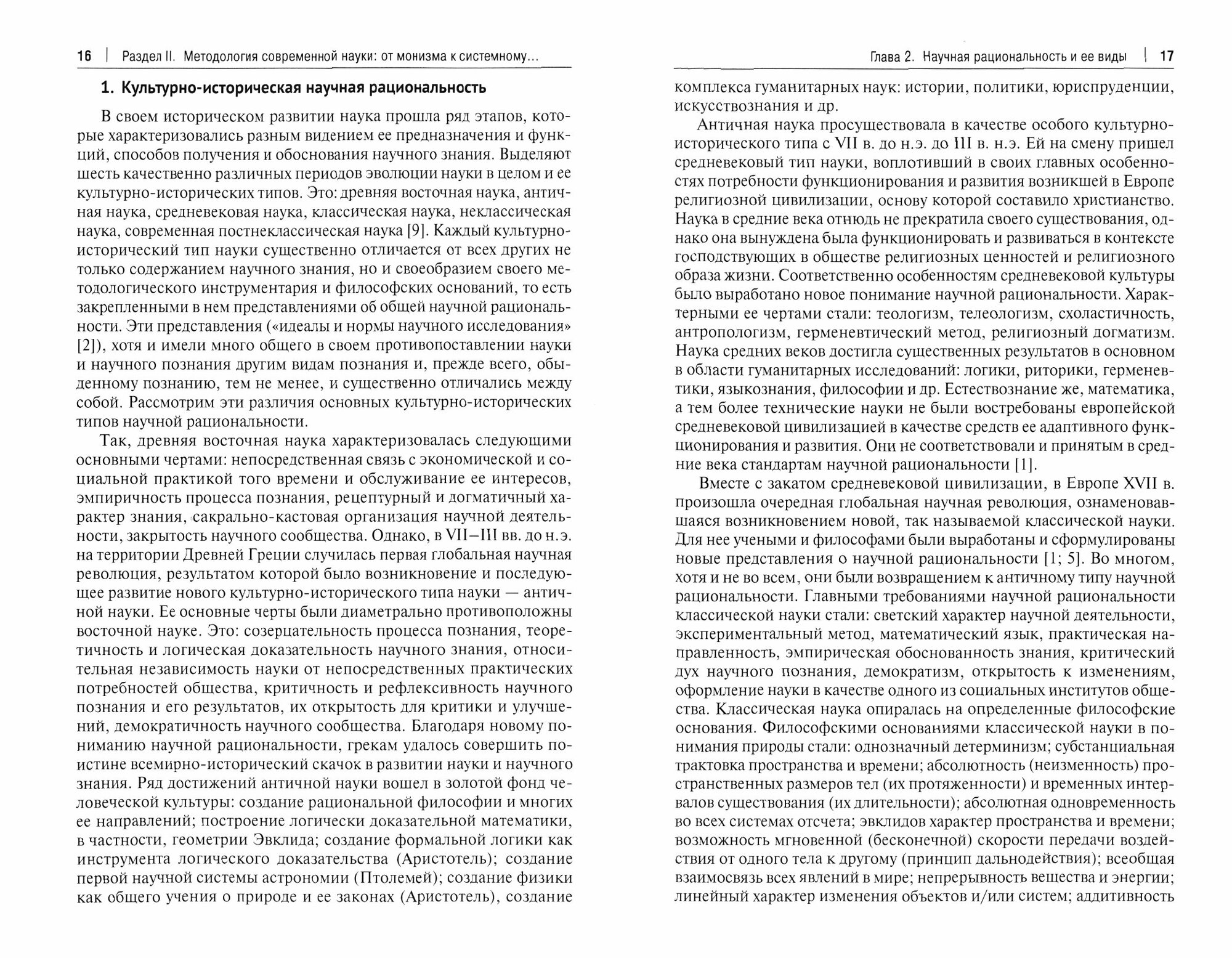 Предмет книги – методологическая культура ученого. Ее формирование осуществляется двумя способами: 1) усвоение технологии научной деятельности у наставников в вузе или лаборатории и 2) усвоение истории методологии науки и выбор одной из методологических традиций, созданных известными учеными и философами. В истории методологии науки можно выделить два крупных этапа: классический и неклассический. Классический этап начался со становления науки Нового времени и продолжался до XX века. Неклассический этап – эпоха современной науки. Общий методологический тренд этого перехода состоял в отказе от методологического монизма в пользу методологического плюрализма науки, но не аддитивного плюрализма (концепция Фейерабенда), а системного.