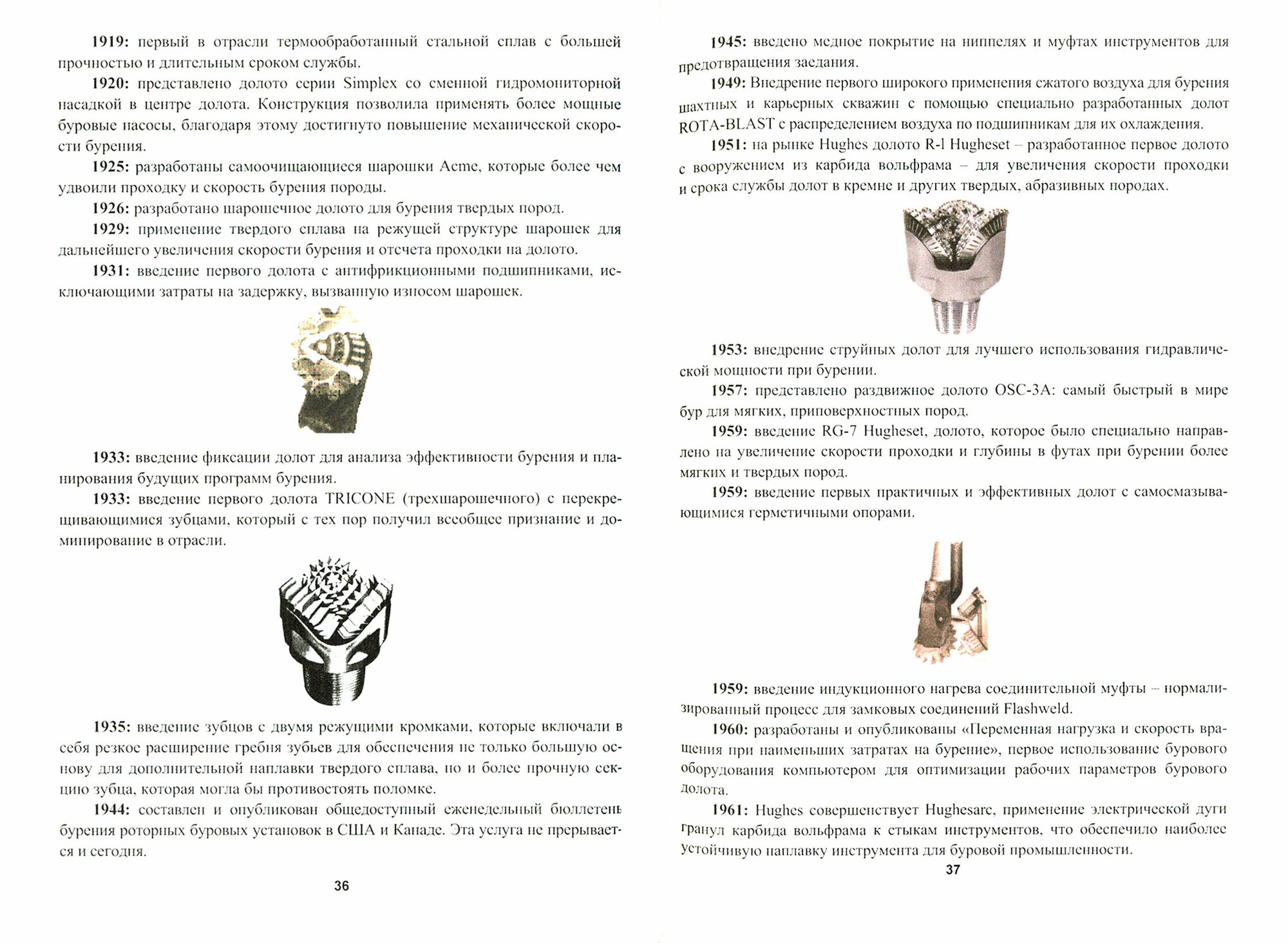 Рассматривается история становления шарошечного долота и последующее его совершенствование, а также возникновение и развитие компаний, производящих породоразрушающий инструмент. Представлены разработки по смещению осей шарошек, по вооружению долота, его размещению на шарошках, его пространственному положению и влиянию этих факторов на эффективность бурения. Перечисляются изменения в опоре долота и смазки опоры. Оценивается гидравлика долота и внесенных изменений. Рассматриваются вибрации в бурении. Анализируется взаимодействие инструмента со стенками скважины.