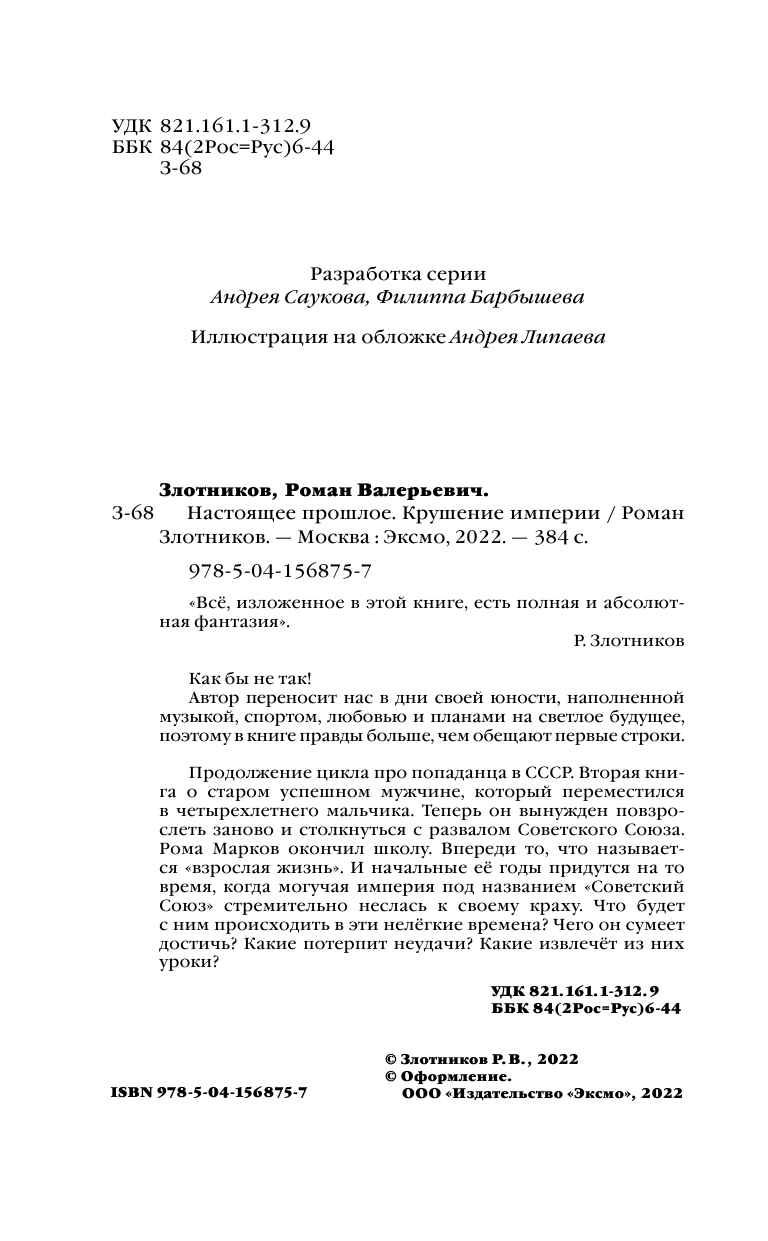 Настоящее прошлое. Крушение империи (Злотников Роман Валерьевич); ООО "Издательство "Эксмо", 2022