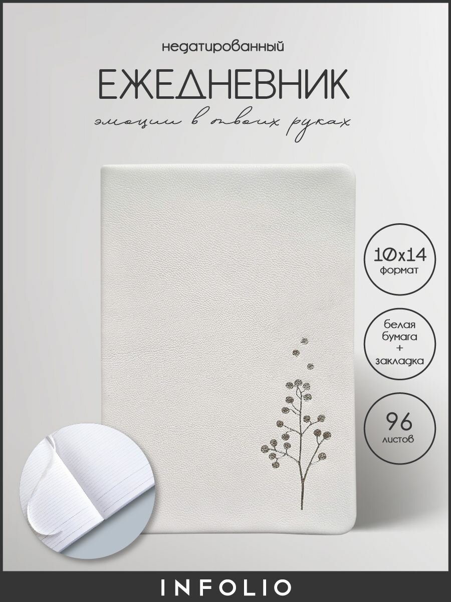 Ежедневник недатированный Sprig 96 листов белый InFolio